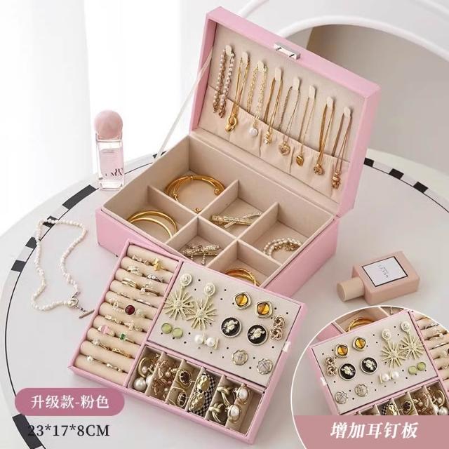 黃金首飾專用收納盒高檔項鏈耳飾耳環帶鎖珠寶精緻盒子輕奢大容量