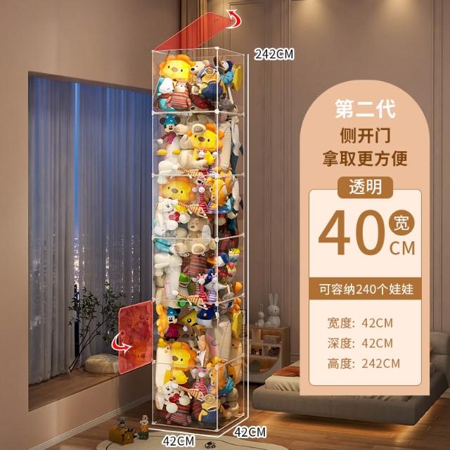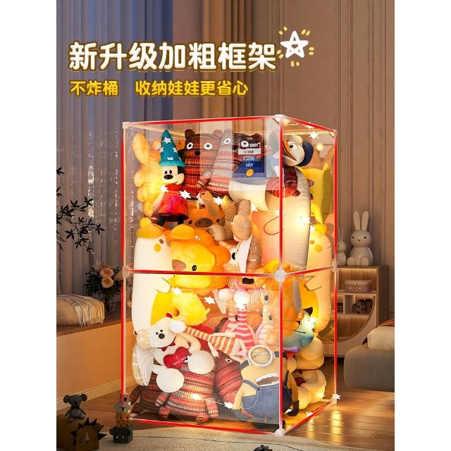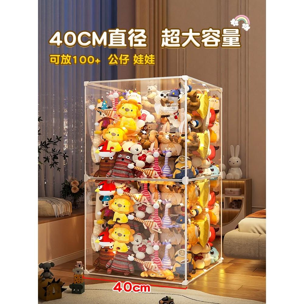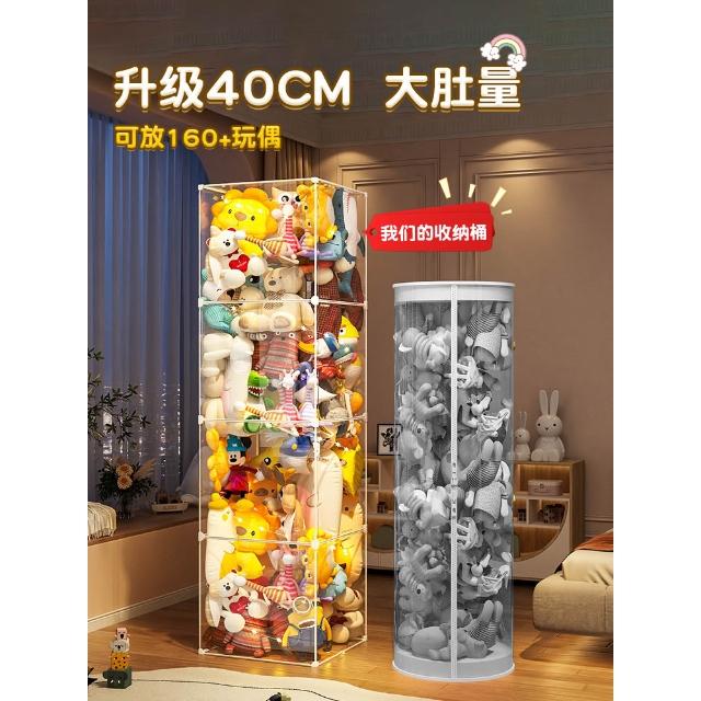 娃娃收納筒毛絨玩具桶放毛公仔箱子裝布玩偶架收納神器透明展示櫃收納箱