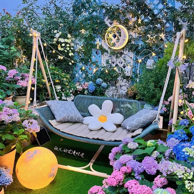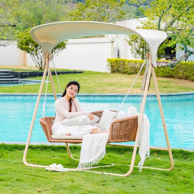 御花園白檀秋千戶外庭院花園陽臺家用吊籃雙人室內搖籃椅網紅吊椅