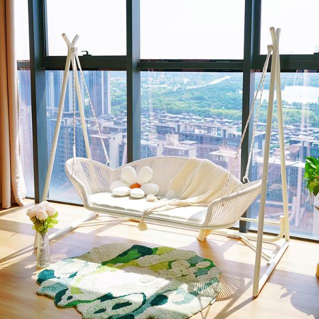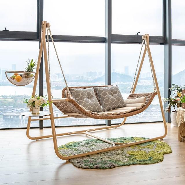 御花園白檀秋千戶外庭院花園陽臺家用吊籃雙人室內搖籃椅網紅吊椅