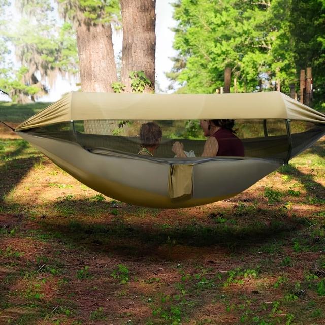 新款吊床戶外雙人防側翻自動速開秋千防蚊蚊帳吊床戶外露營遮陽篷
