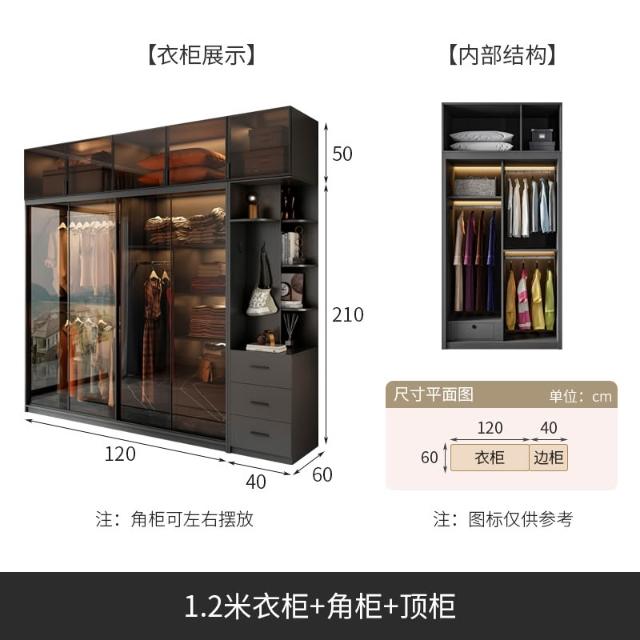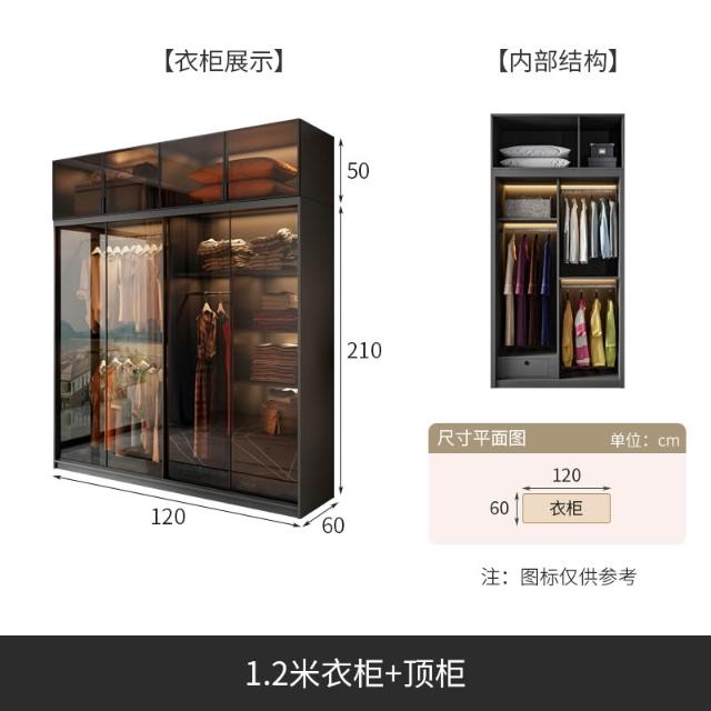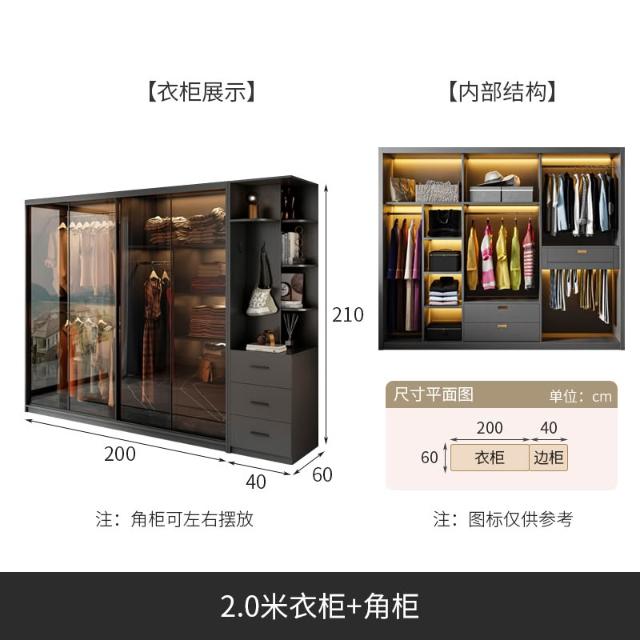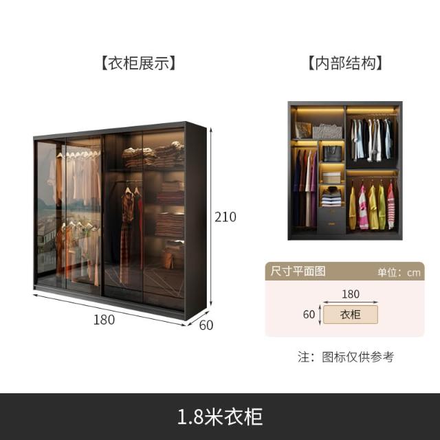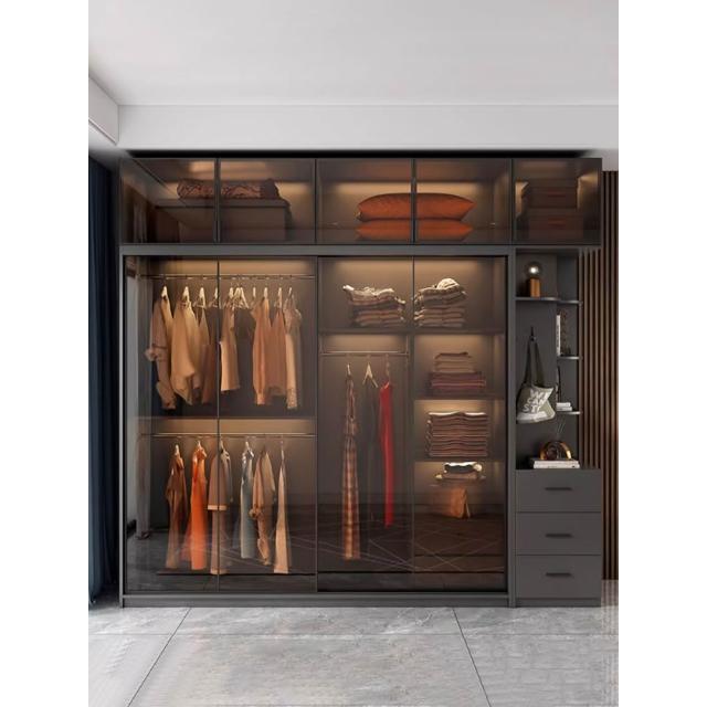 推拉門衣櫃家用臥室現代簡約輕奢高級感玻璃門滑移門櫃子別墅衣櫥