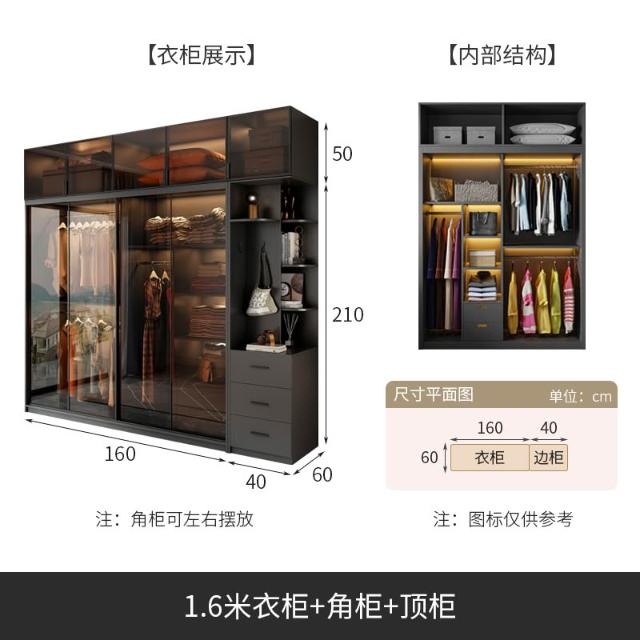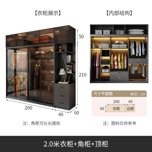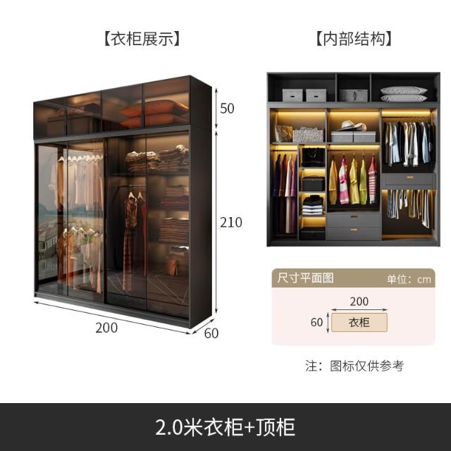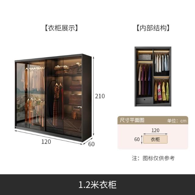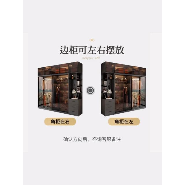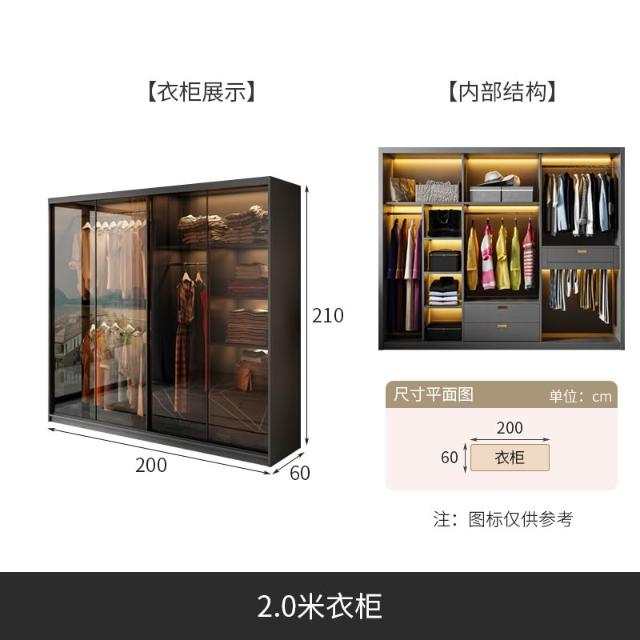 推拉門衣櫃家用臥室現代簡約輕奢高級感玻璃門滑移門櫃子別墅衣櫥