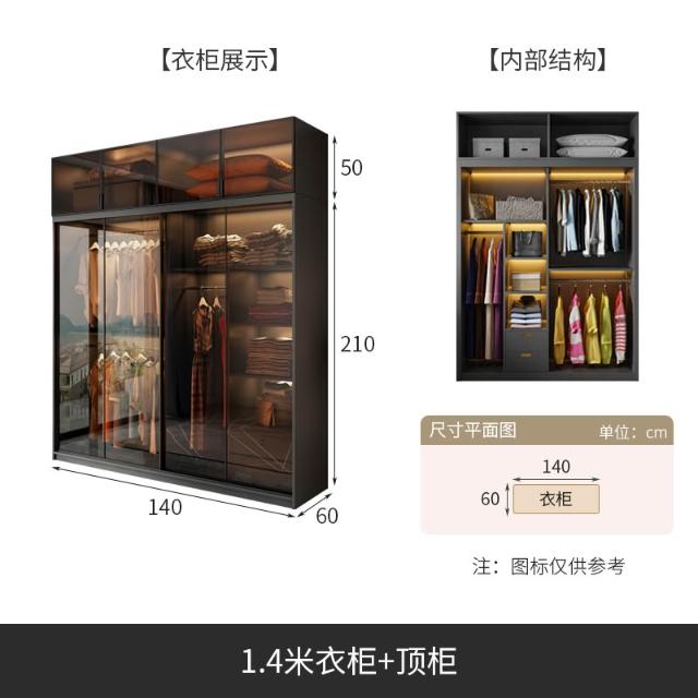 推拉門衣櫃家用臥室現代簡約輕奢高級感玻璃門滑移門櫃子別墅衣櫥