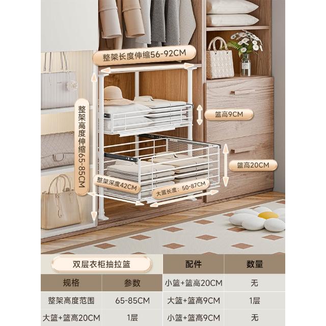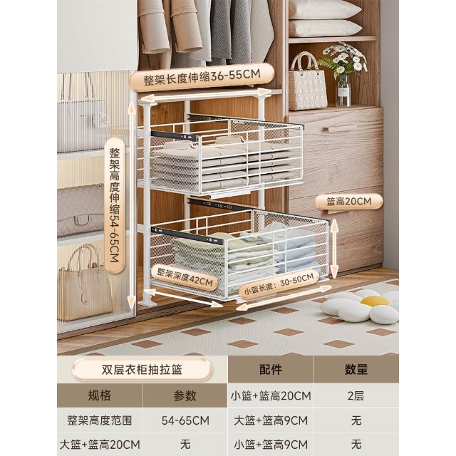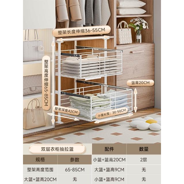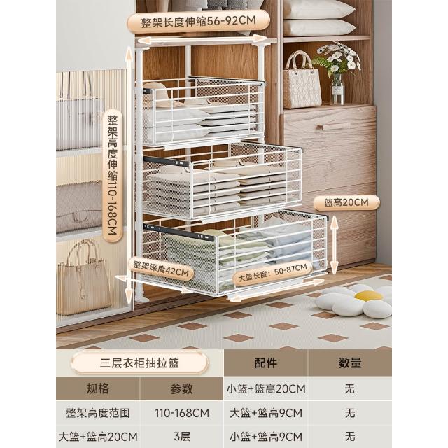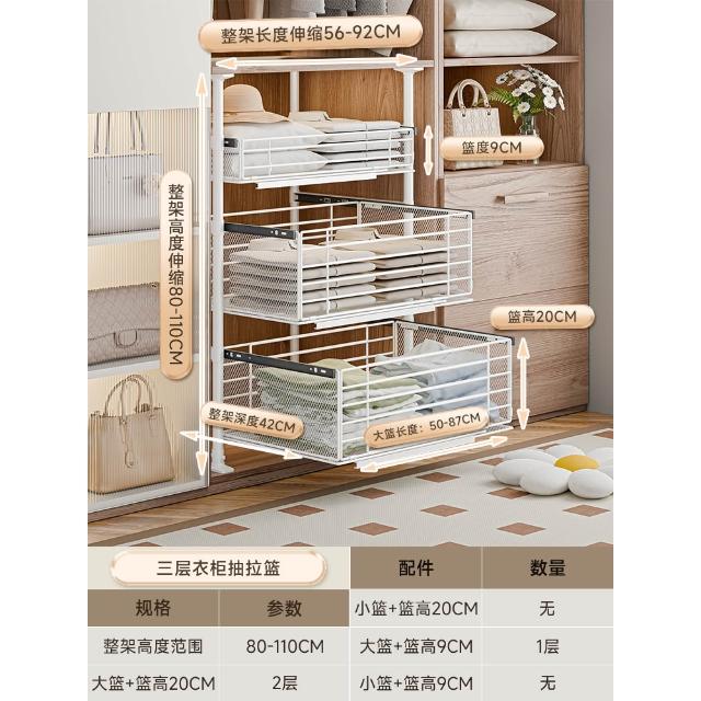 衣櫃拉籃抽屜式免打孔分層推拉軌道收納抽拉褲架伸縮多層改造內置