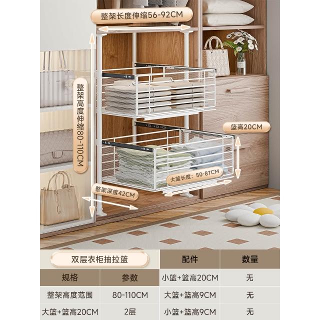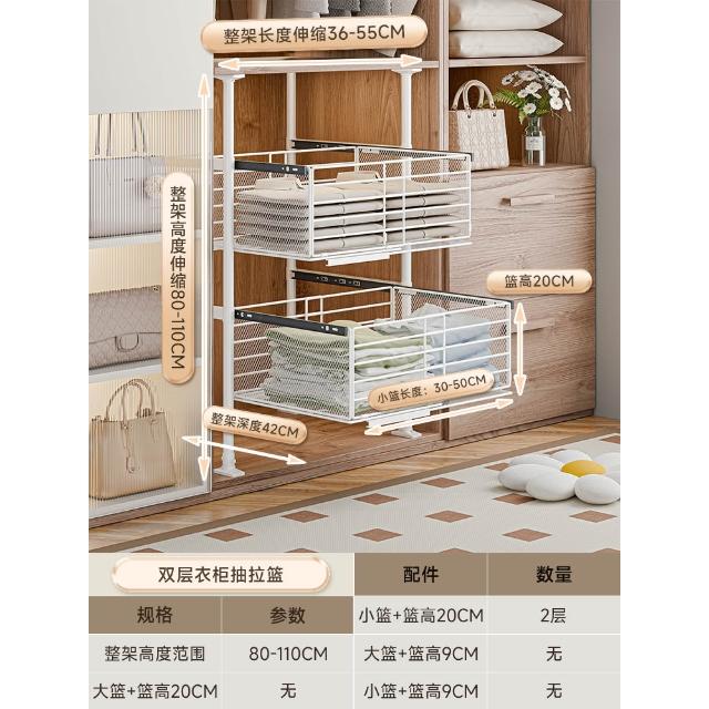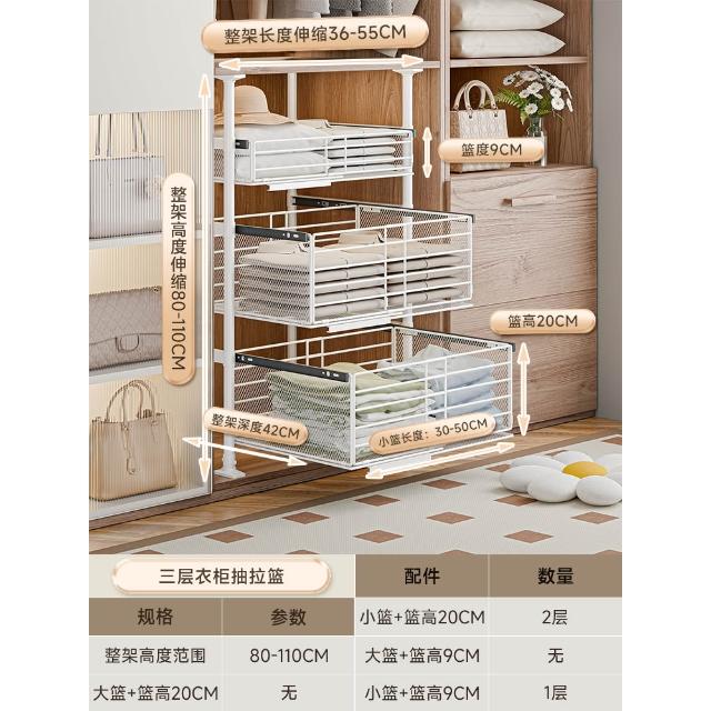 衣櫃拉籃抽屜式免打孔分層推拉軌道收納抽拉褲架伸縮多層改造內置