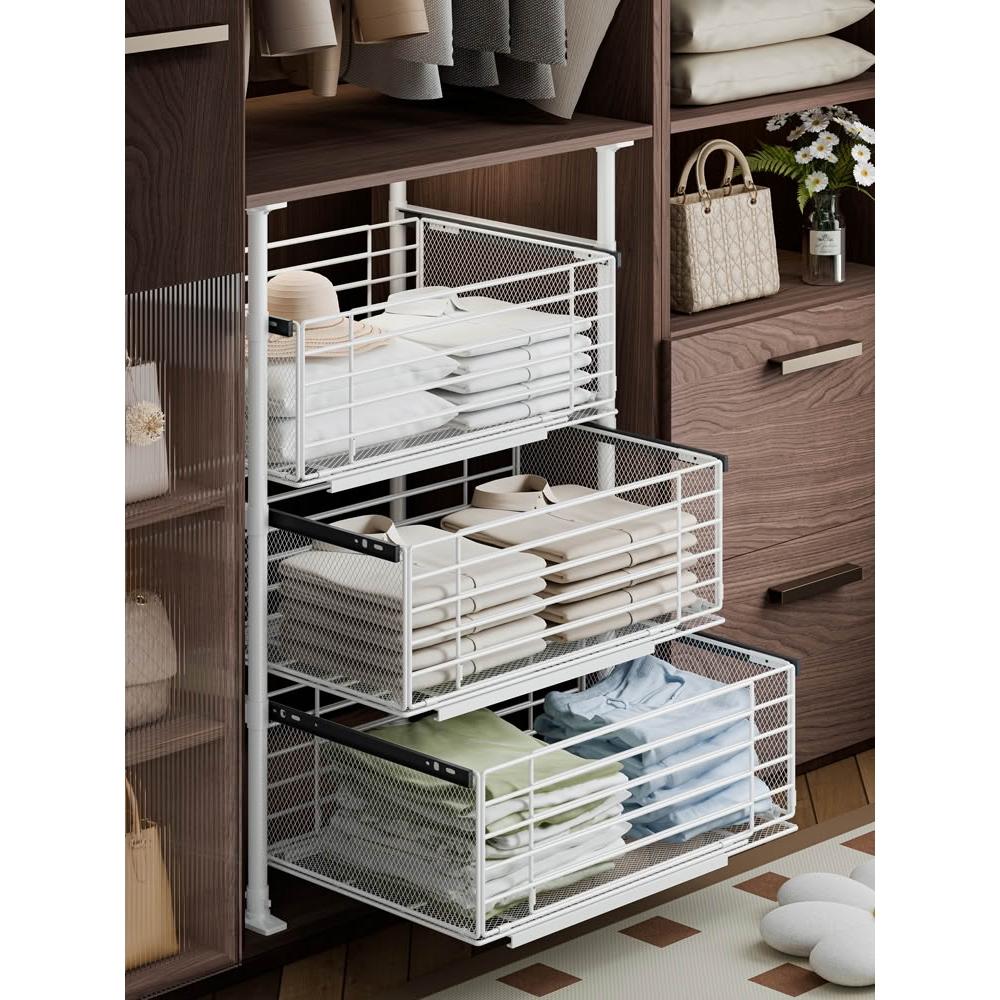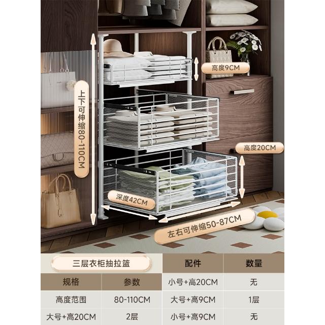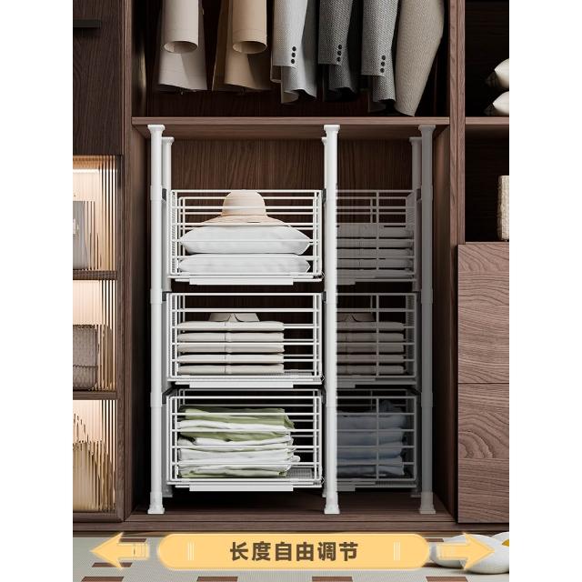 衣櫃收納分層神器拉籃抽屜式隔板頂天立地櫃內衣服伸縮整理置物架