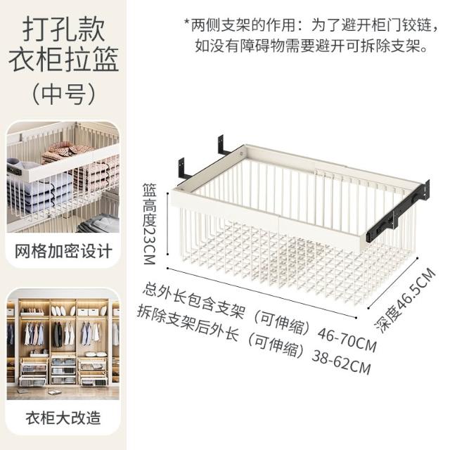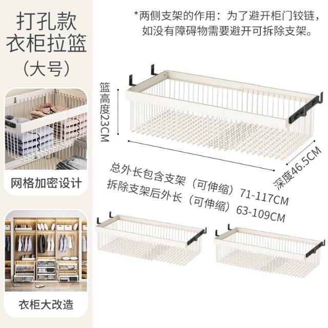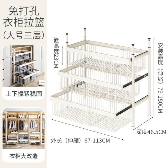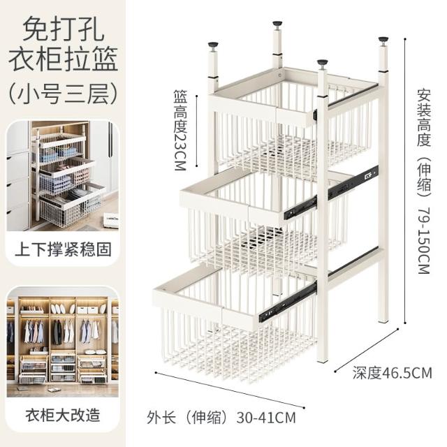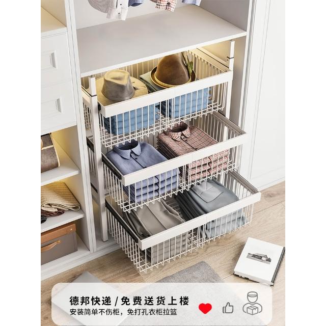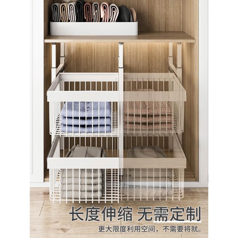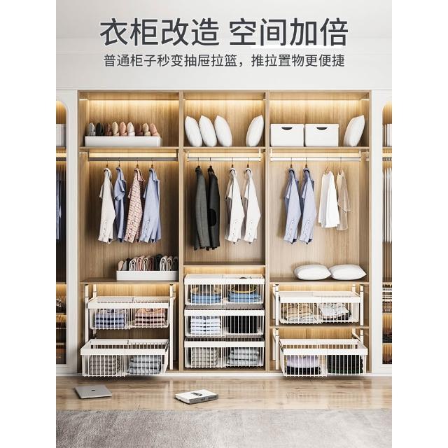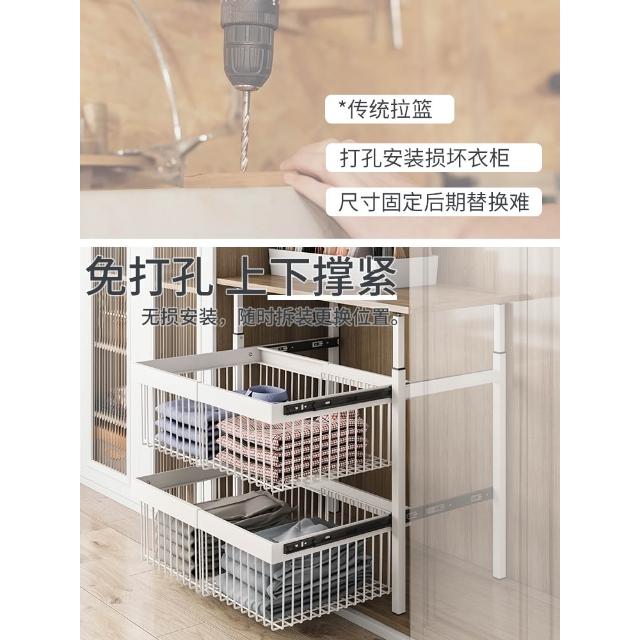 衣櫃拉籃抽屜式免打孔分層推拉軌道收納改造內置抽拉褲架伸縮滑軌