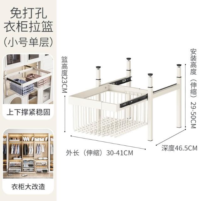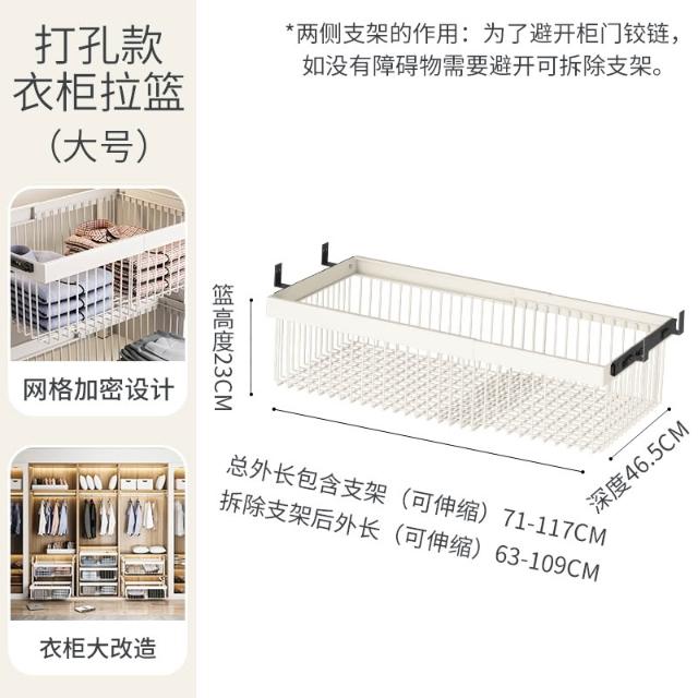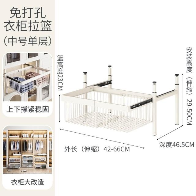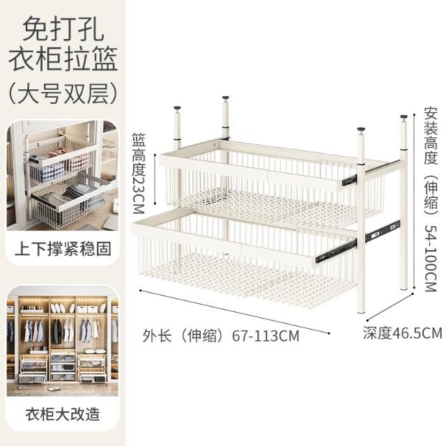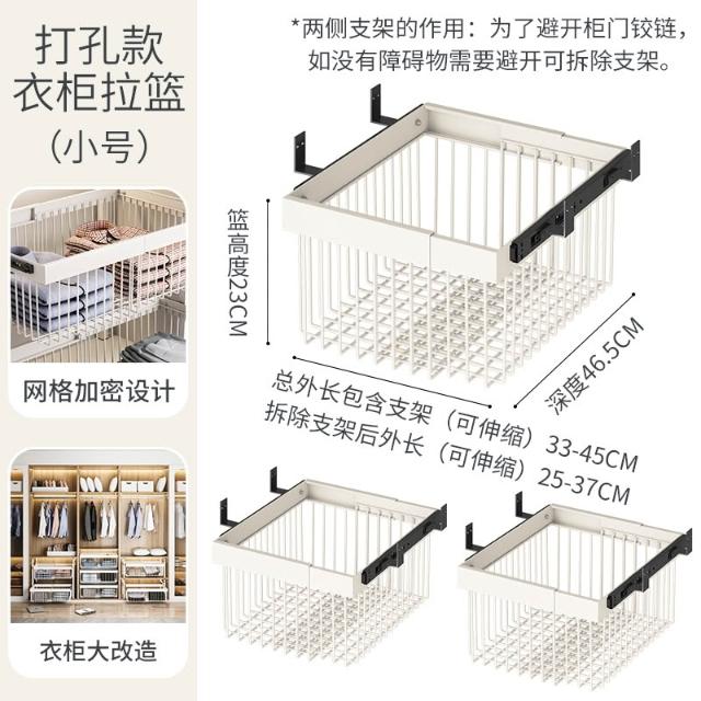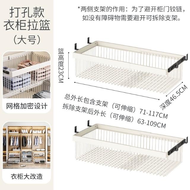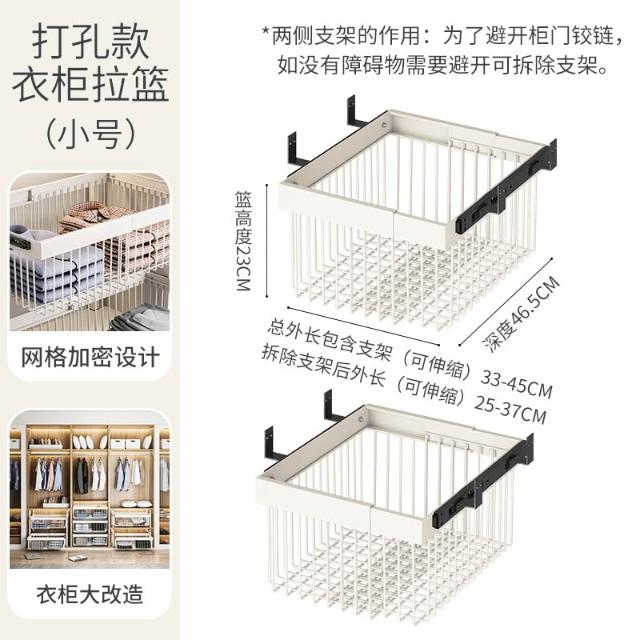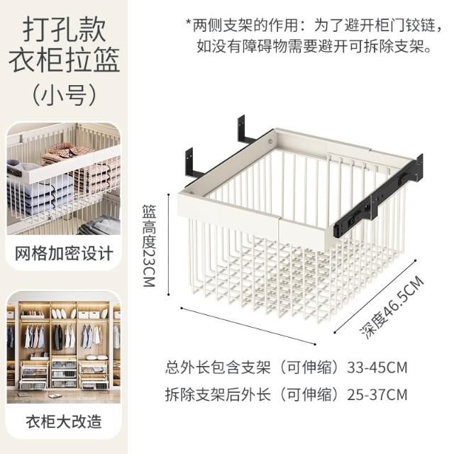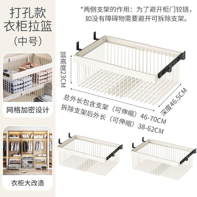 衣櫃拉籃抽屜式免打孔分層推拉軌道收納改造內置抽拉褲架伸縮滑軌