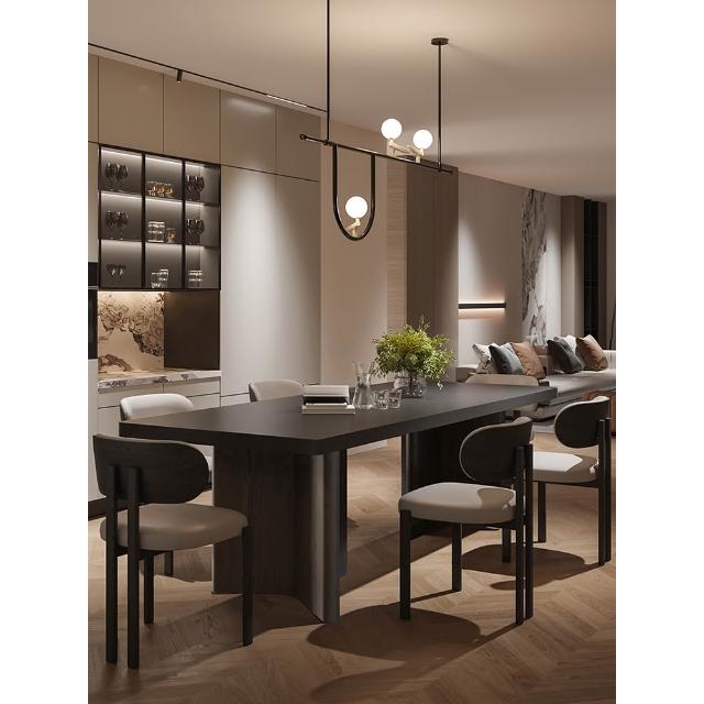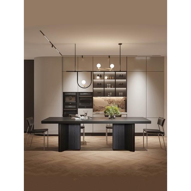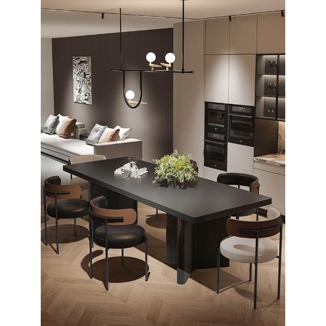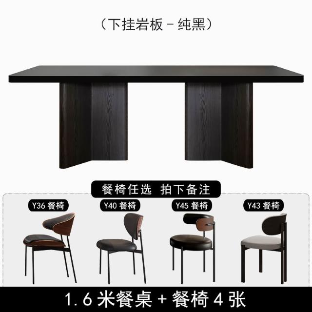 意式簡約現代純黑下掛岩板實木餐桌椅組合大戶型設計師大板桌茶桌