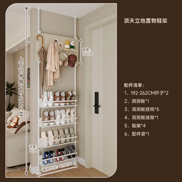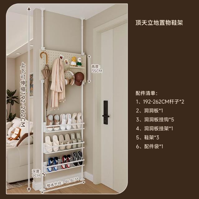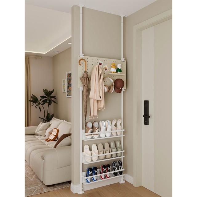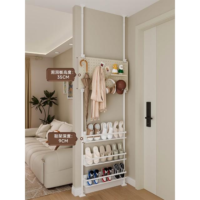入戶門口鞋架玄關洞洞板頂天立地牆面裝飾置物架門口掛衣架一體