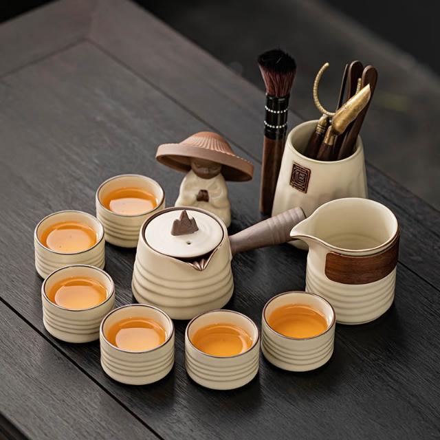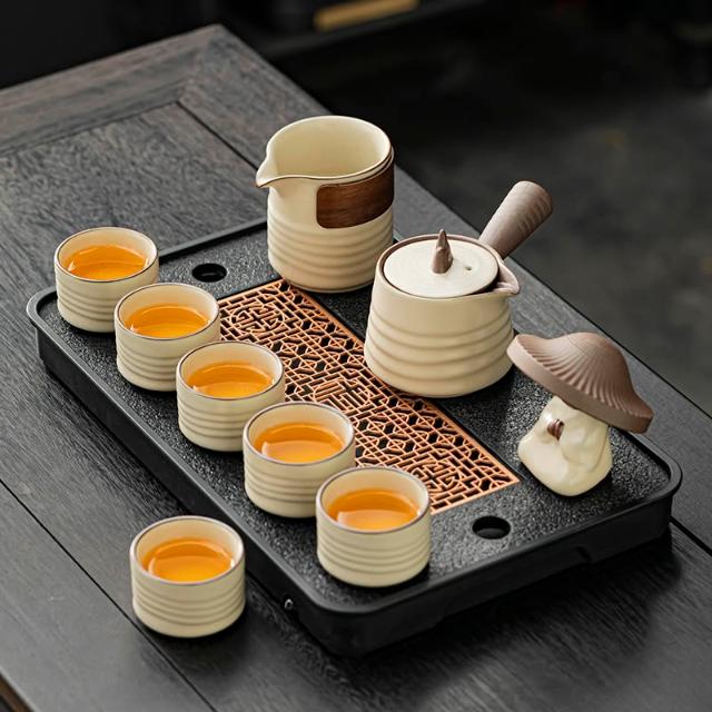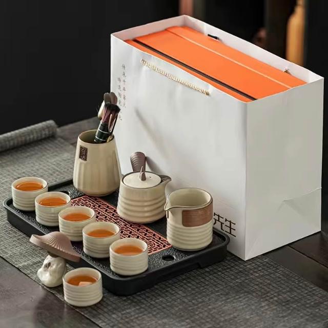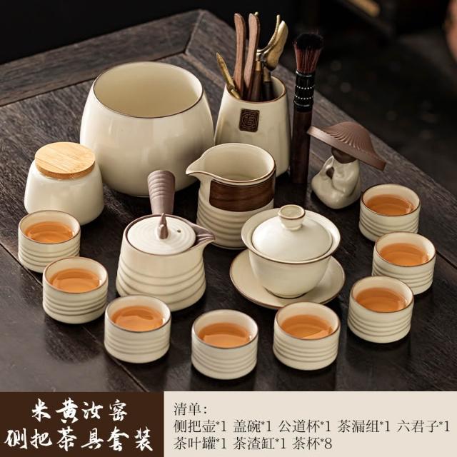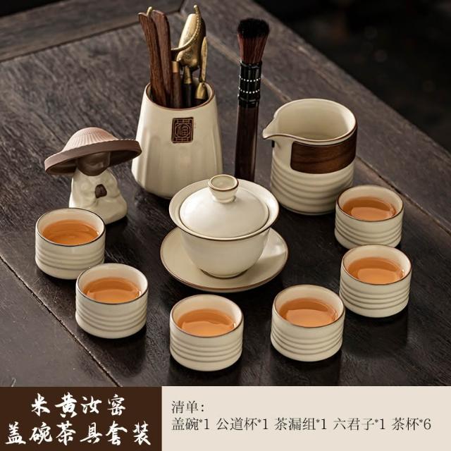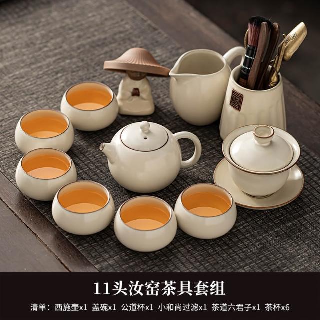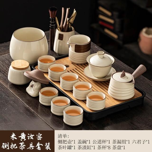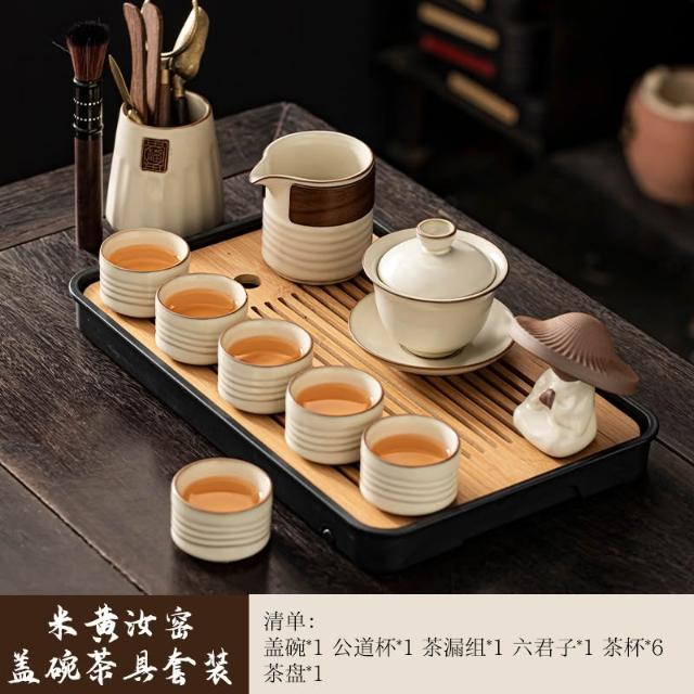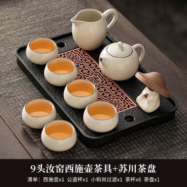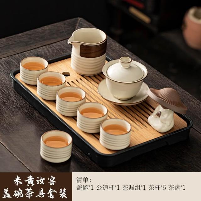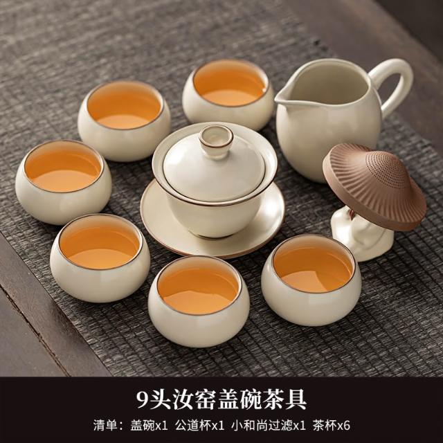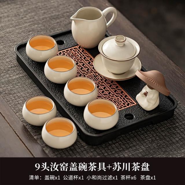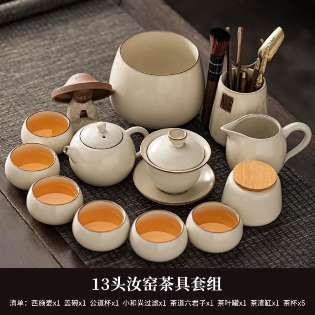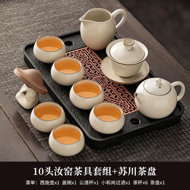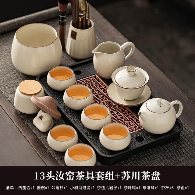 汝窯功夫茶具套裝家用陶瓷茶壺泡茶蓋碗輕奢高檔茶盤喝茶茶杯整套
