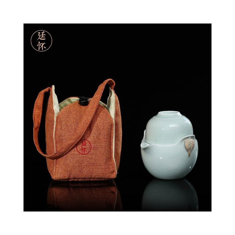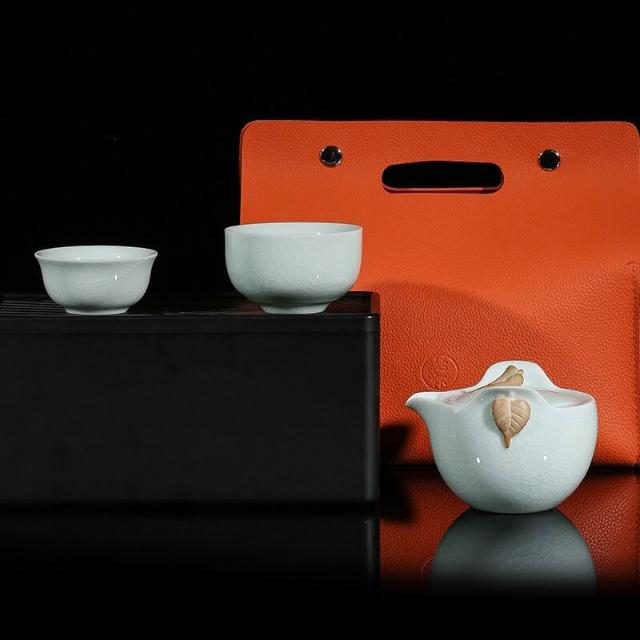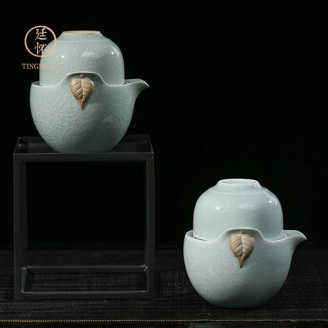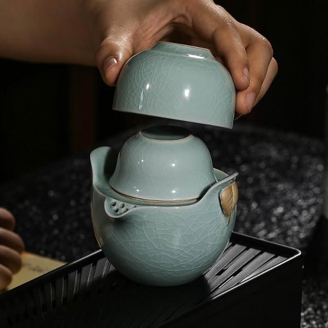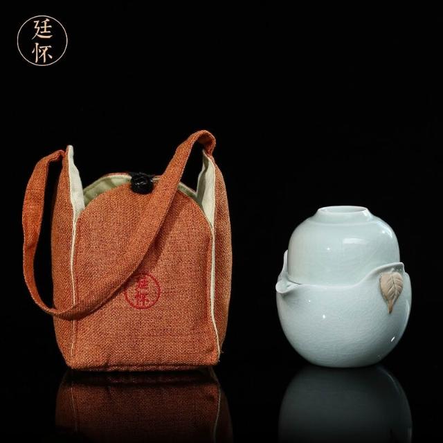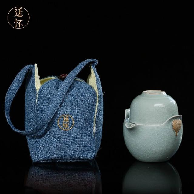 廷懷窯旗艦店汝窯快客杯一壺二杯一杯汝瓷旅行茶具可攜式手抓壺