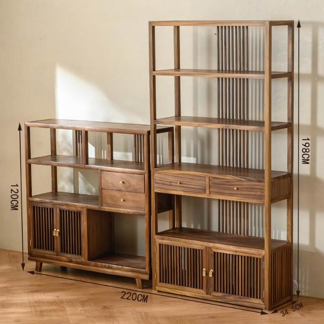 北美黑胡桃博古架實木中式茶空間多寶閣置物架古風書架古董展示櫃