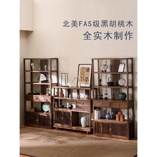 北美黑胡桃博古架實木中式茶空間多寶閣置物架古風書架古董展示櫃