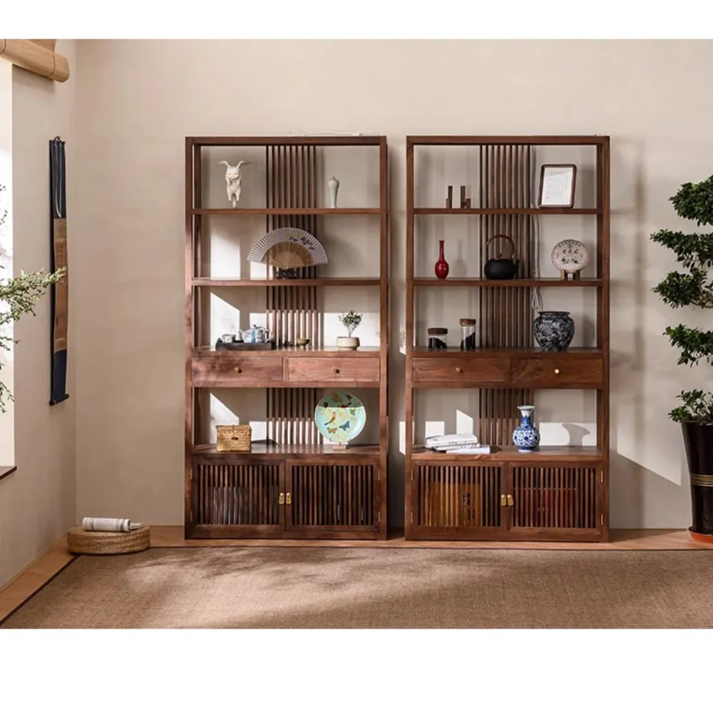 北美黑胡桃博古架實木中式茶空間多寶閣置物架古風書架古董展示櫃