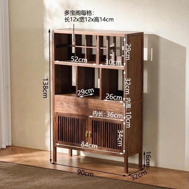 北美黑胡桃博古架實木中式茶空間多寶閣置物架古風書架古董展示櫃