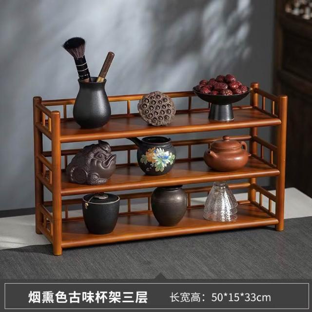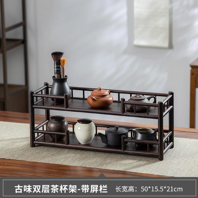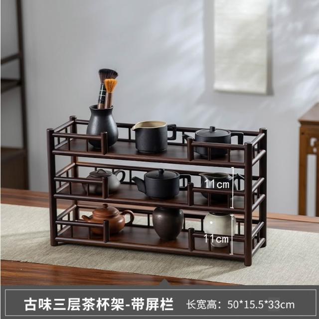 復古禪意茶杯架子茶具收納架功夫茶壺擺放架瀝水架桌上置物博古架