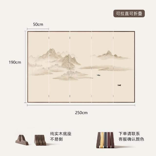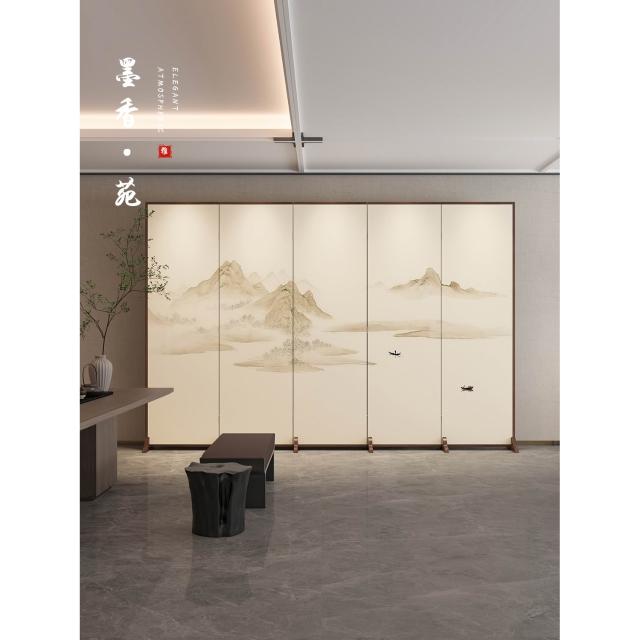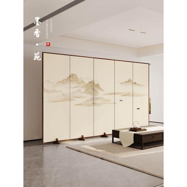 新中式實木屏風隔斷現代簡約折疊移動客廳遮擋裝飾辦公室酒店山水