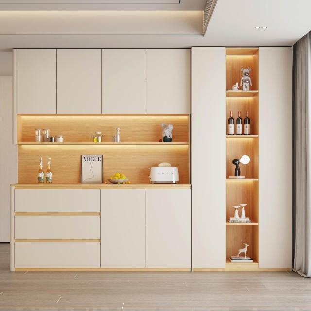實木餐邊櫃靠牆一體新款家用客餐廳儲物櫃全屋定制輕奢收納櫃酒櫃