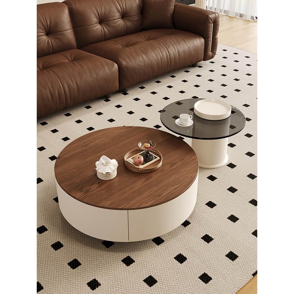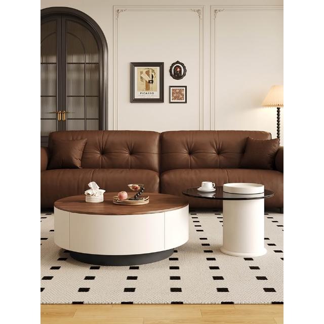 新款胡桃木大小圓茶几桌組合客廳家用輕奢現代中古風小戶型高級感
