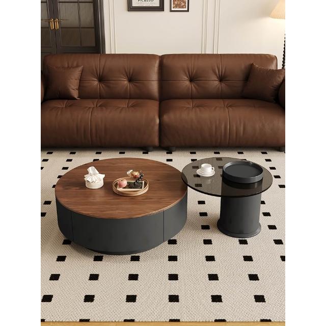 新款胡桃木大小圓茶几桌組合客廳家用輕奢現代中古風小戶型高級感