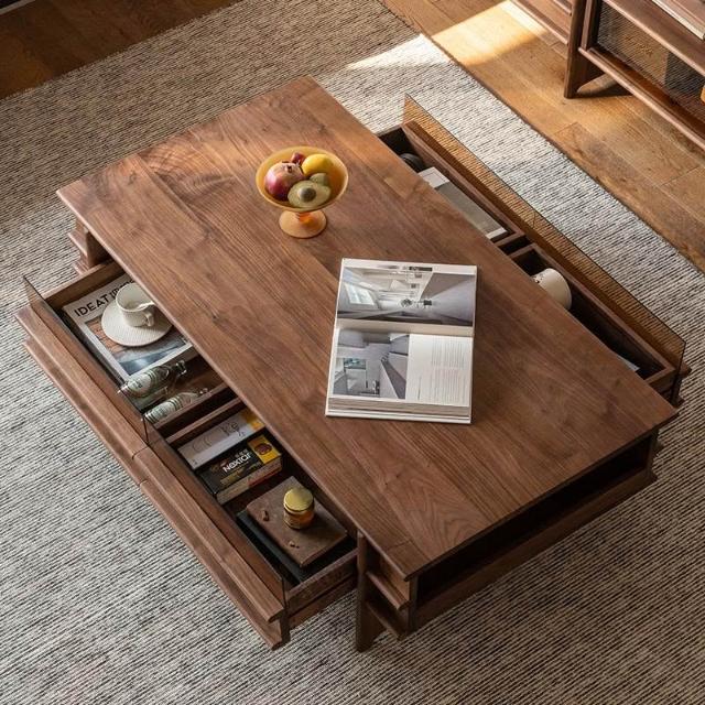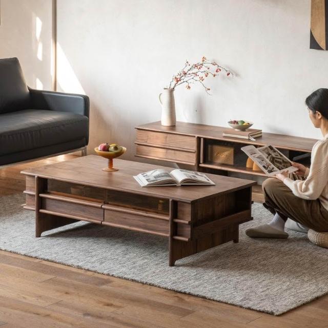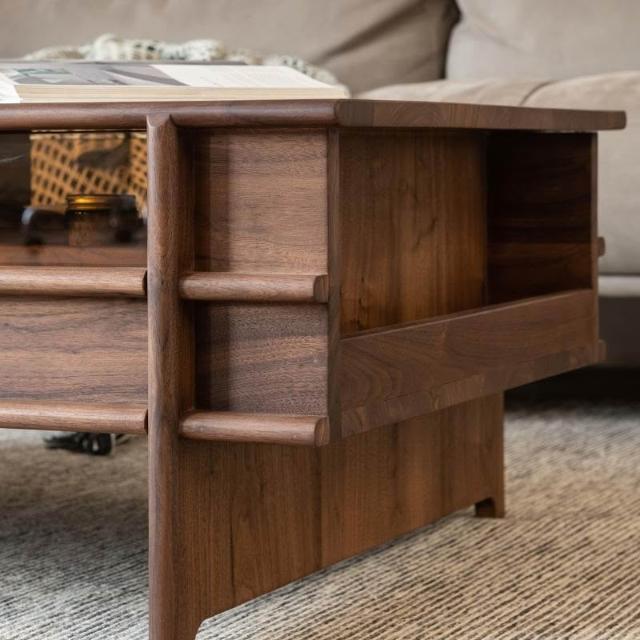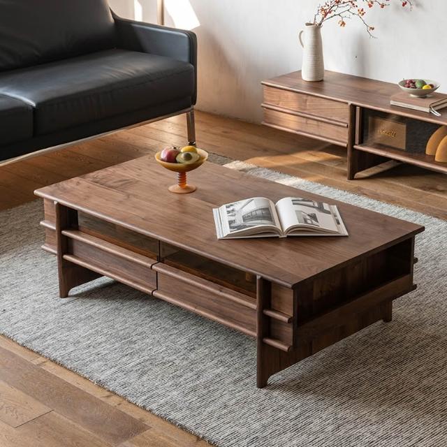 北美黑胡桃木茶几簡約現代客廳實木小戶型多功能儲物櫃侘寂風茶几