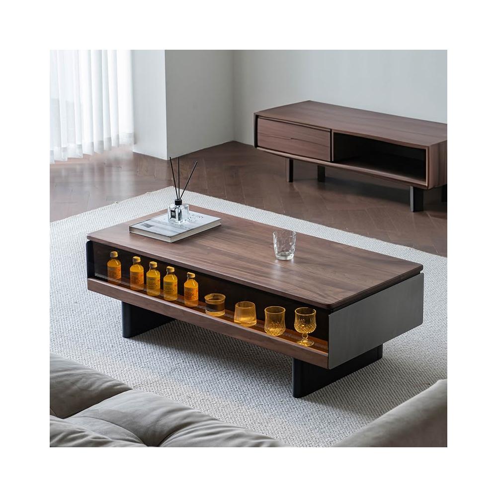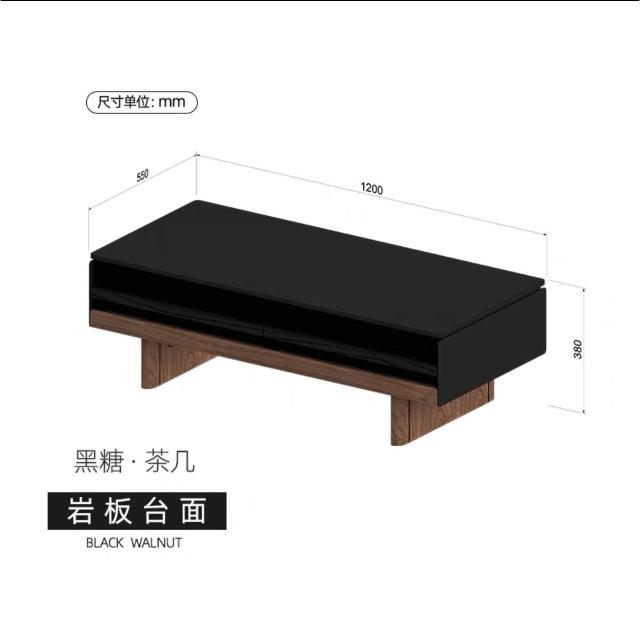 北美黑胡桃木實木岩板茶几小戶型茶几燈帶燈現代簡約黑色北臥茶臺