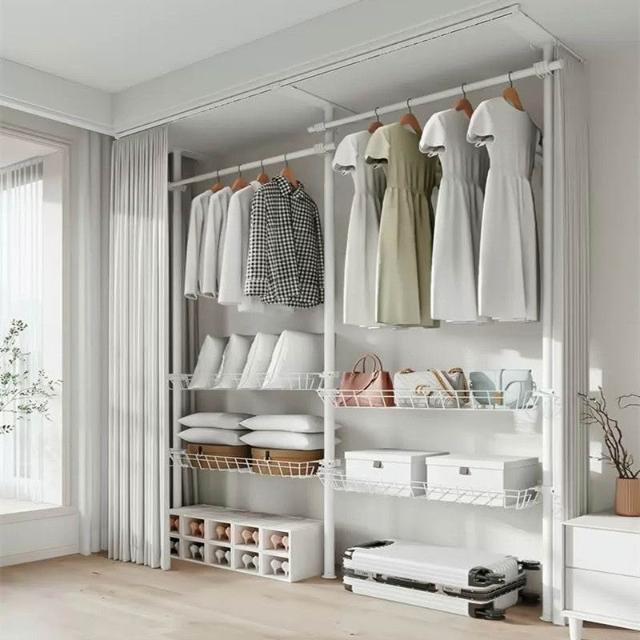 頂天立地衣架 落地臥室開放式衣架 簡易衣帽間 置物架子 組裝衣櫃 家用臥室衣架 開放式衣架 臥室收納衣櫥 掛衣架
