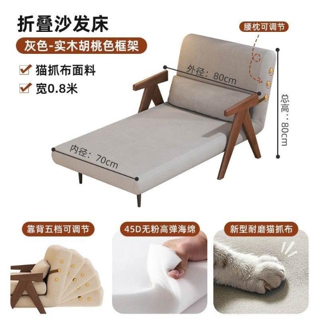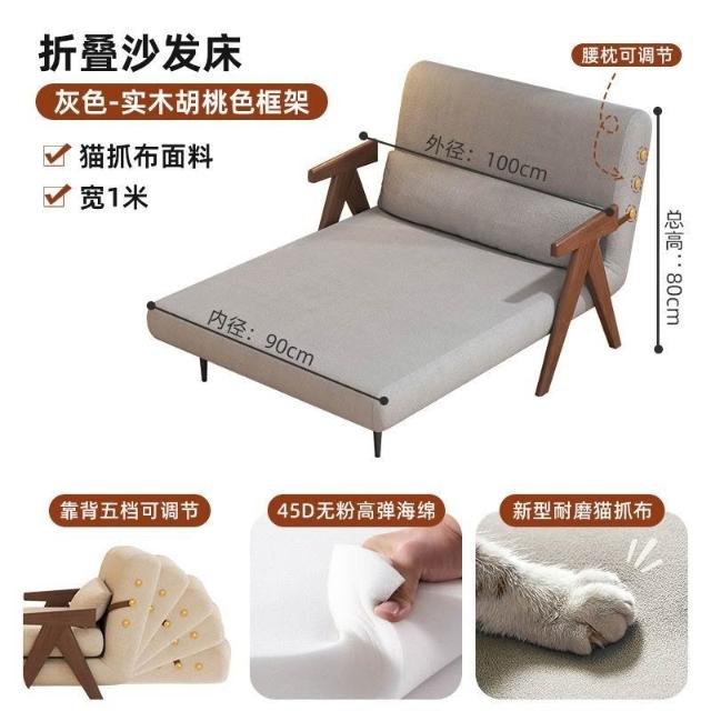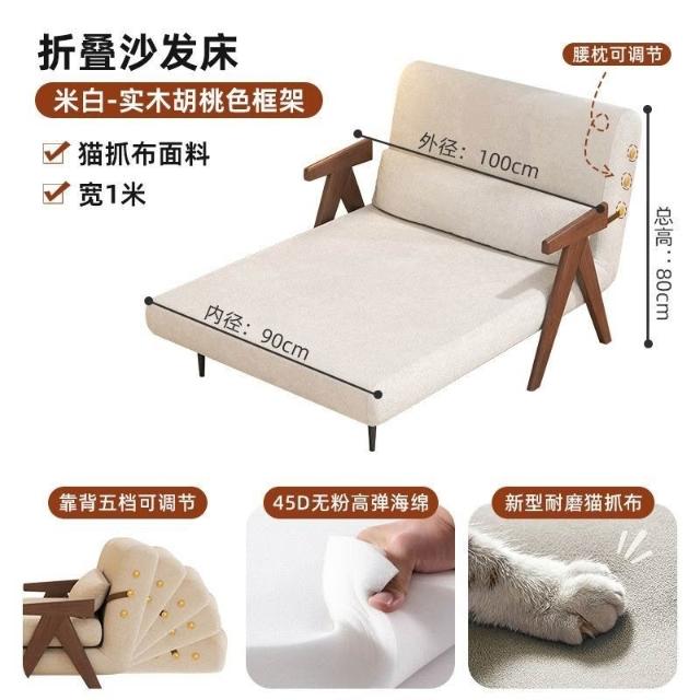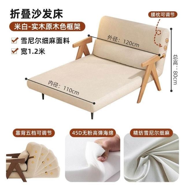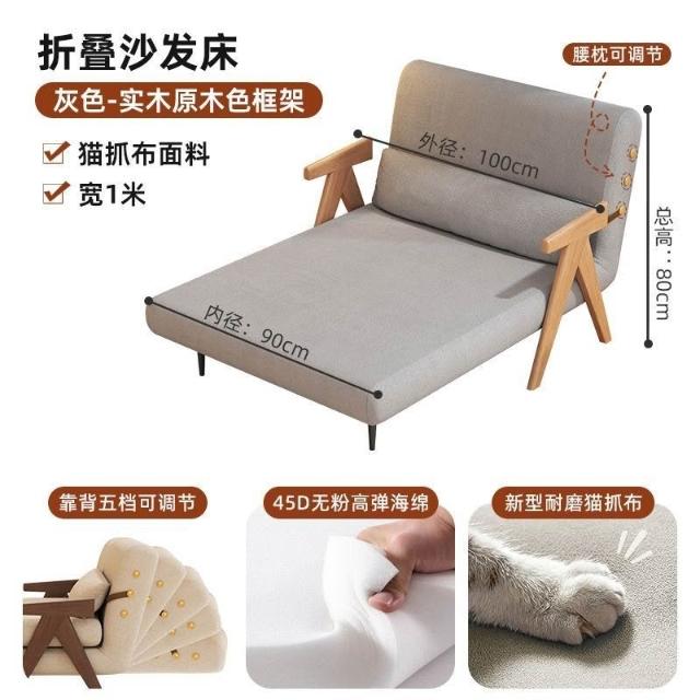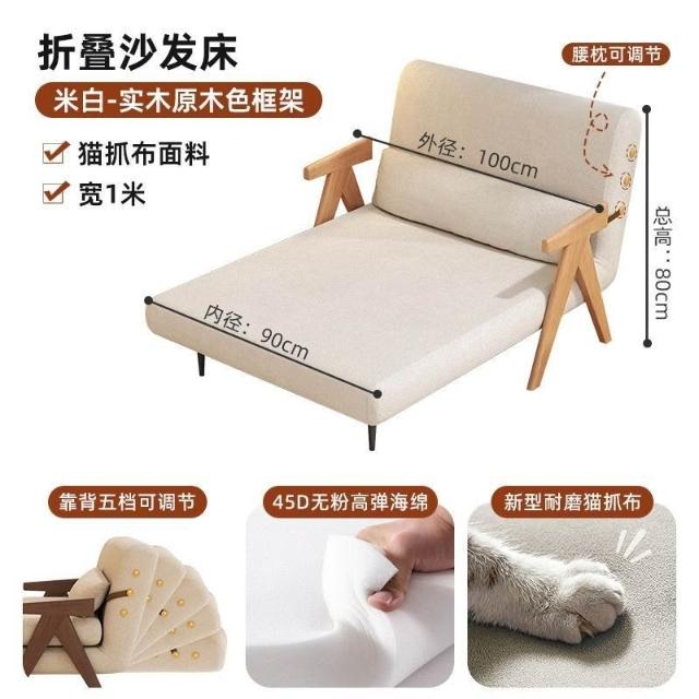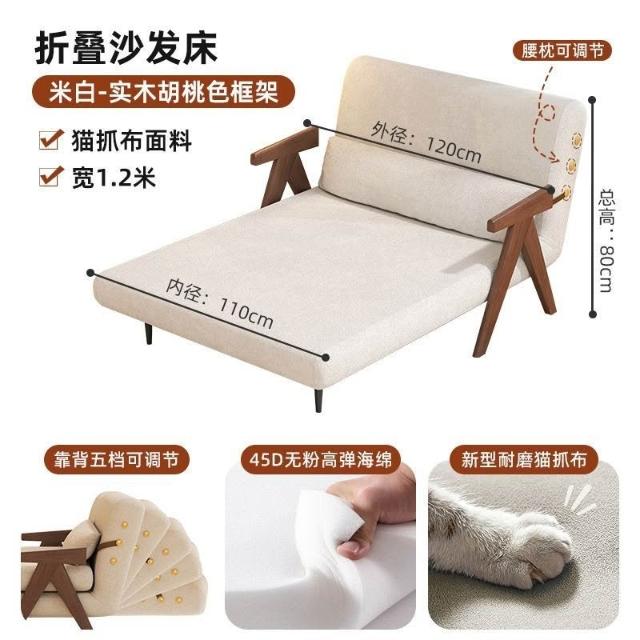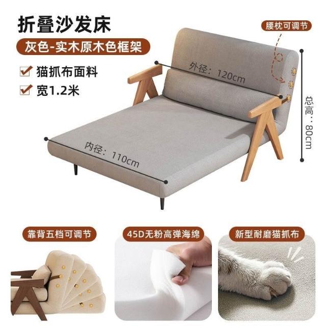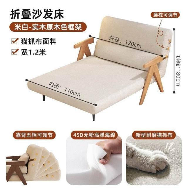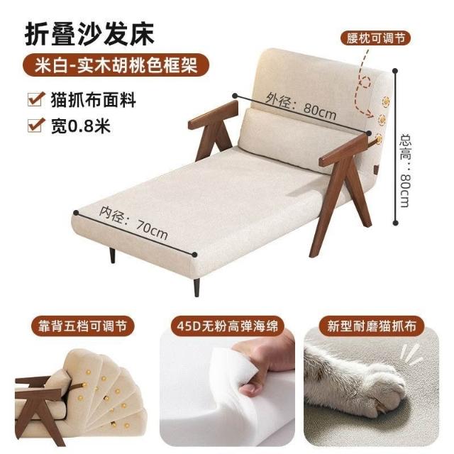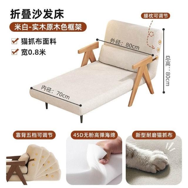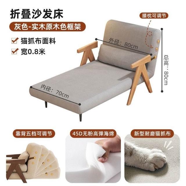 實木沙髮床折疊式兩用家庭多功能沙髮椅單人小戶型家用可躺伸縮床