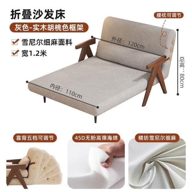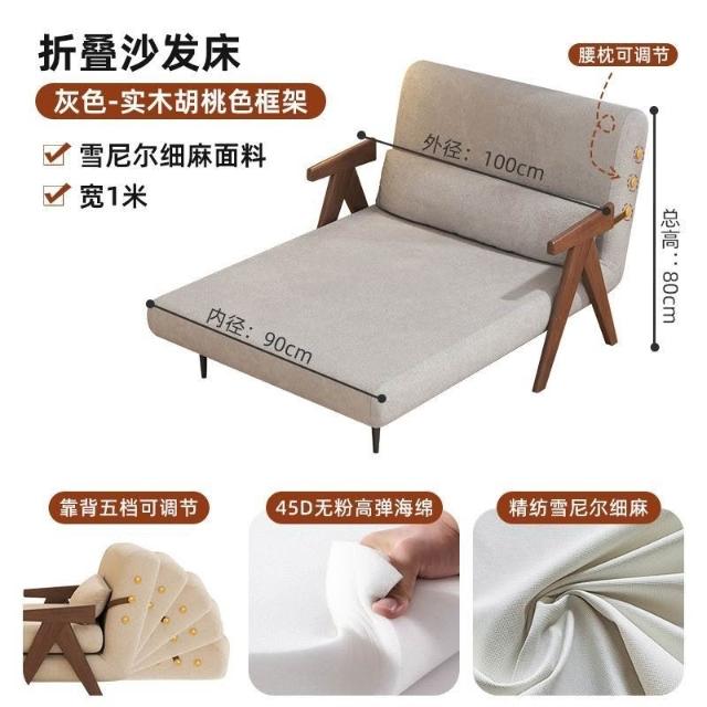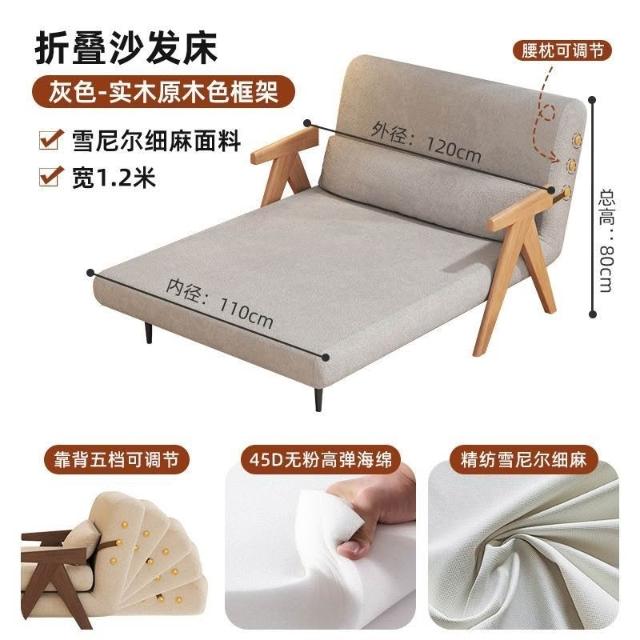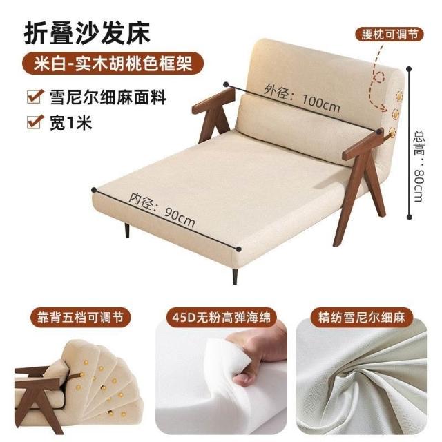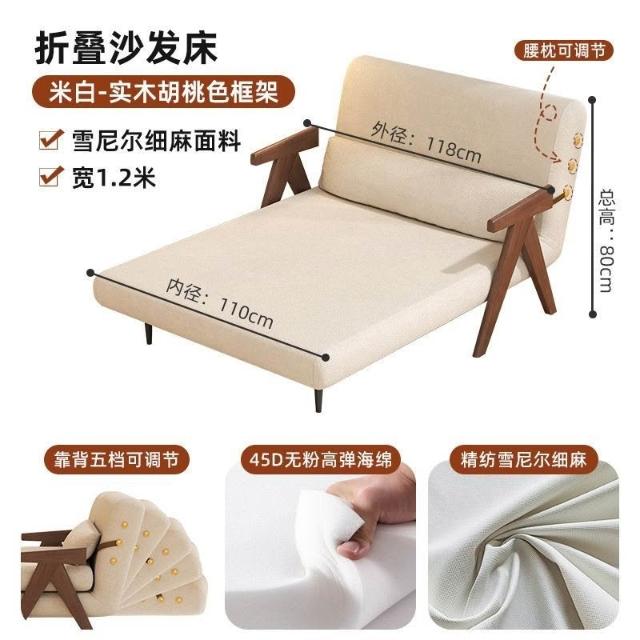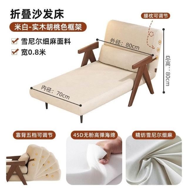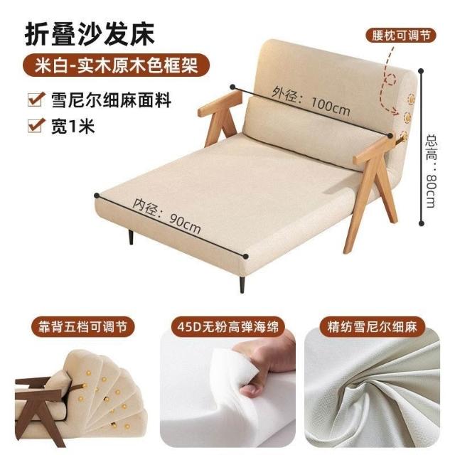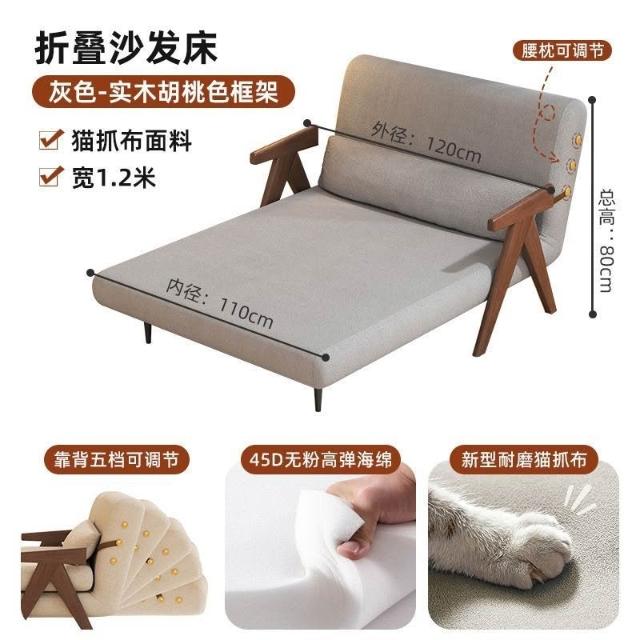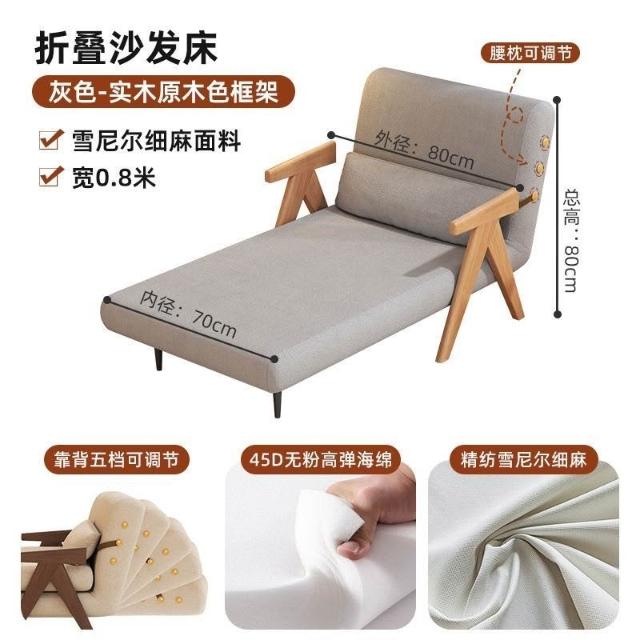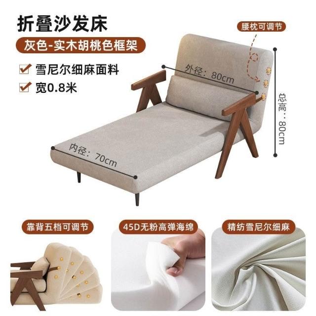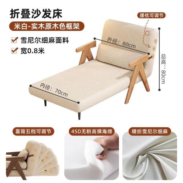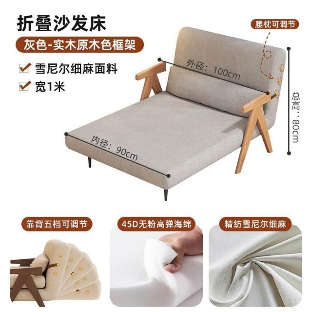 實木沙髮床折疊式兩用家庭多功能沙髮椅單人小戶型家用可躺伸縮床