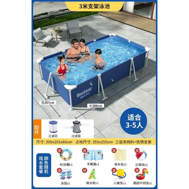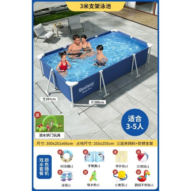 Bestway支架游泳池家用寶寶免充氣泳池家庭折疊魚池戶外水池