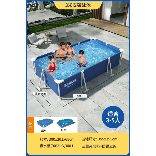 Bestway支架游泳池家用寶寶免充氣泳池家庭折疊魚池戶外水池
