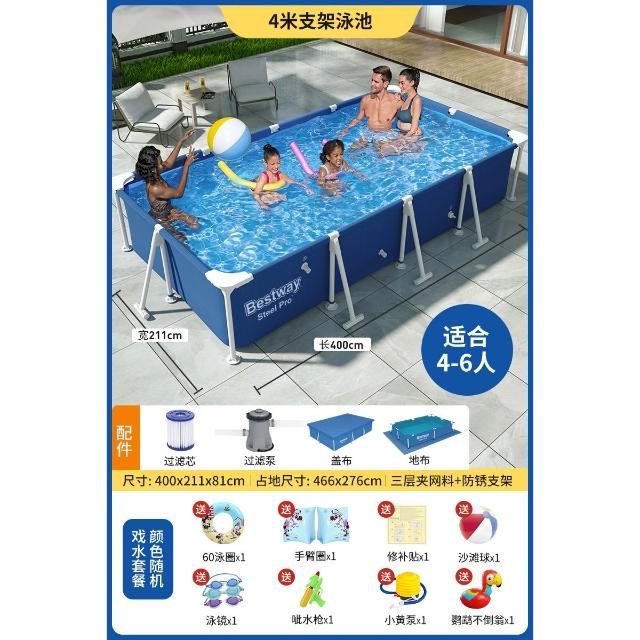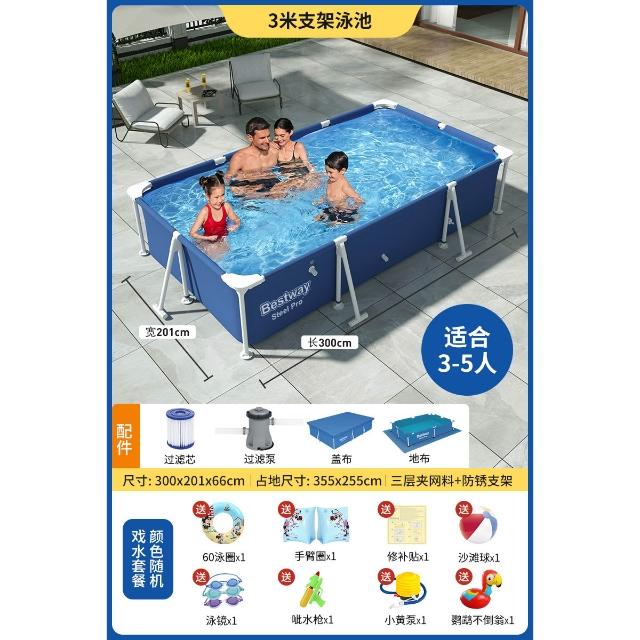 Bestway支架游泳池家用寶寶免充氣泳池家庭折疊魚池戶外水池