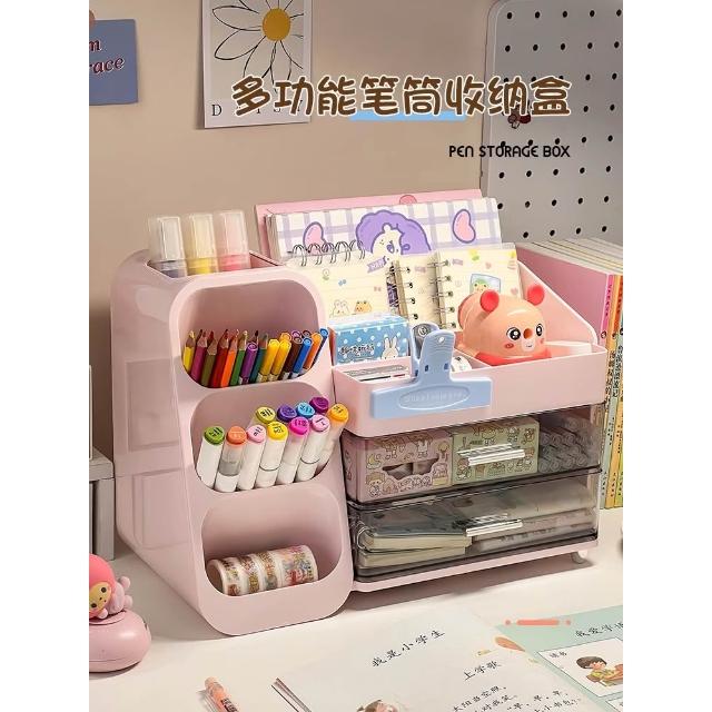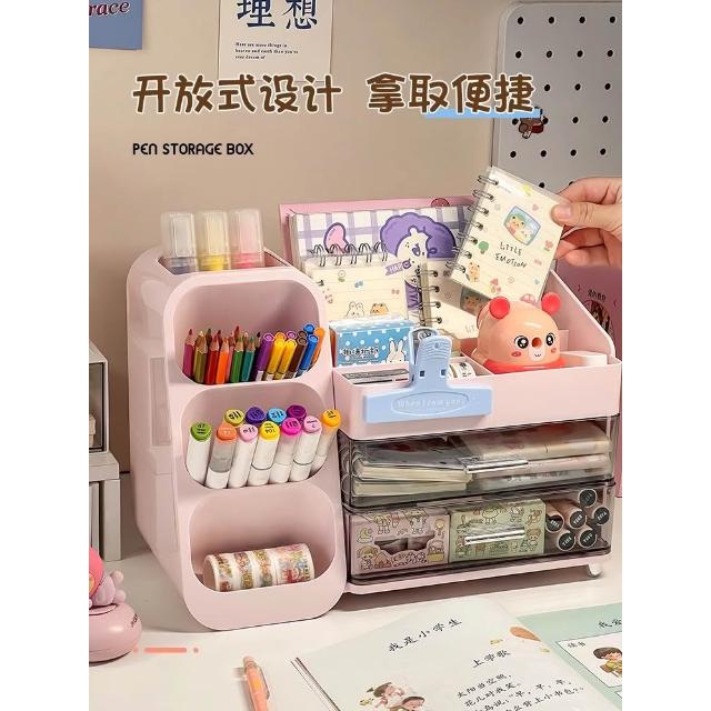 斜插式筆筒書桌收納盒學生兒童女孩文具整理置物架子辦公室帶抽屜