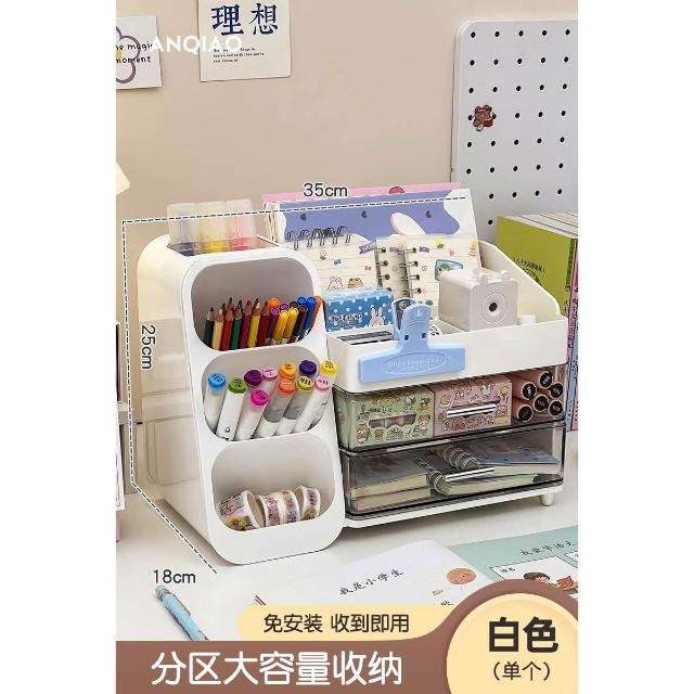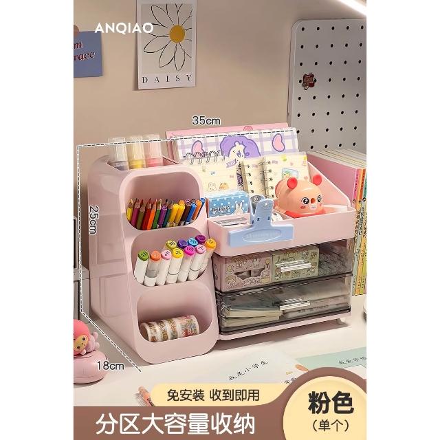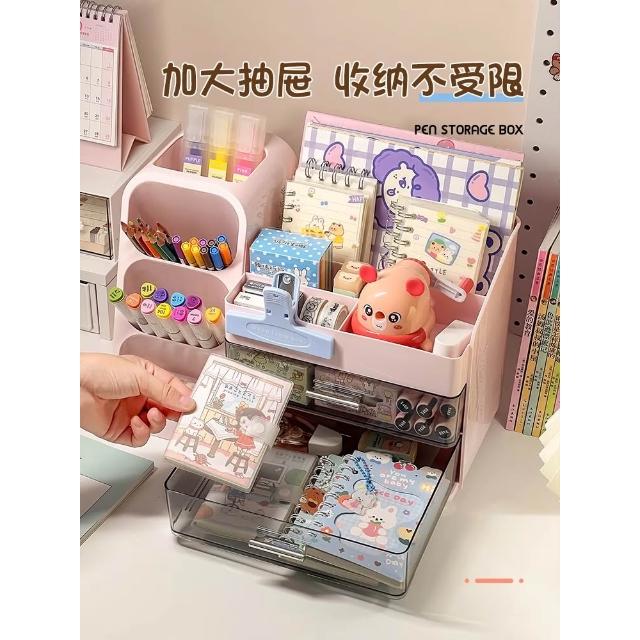 斜插式筆筒書桌收納盒學生兒童女孩文具整理置物架子辦公室帶抽屜