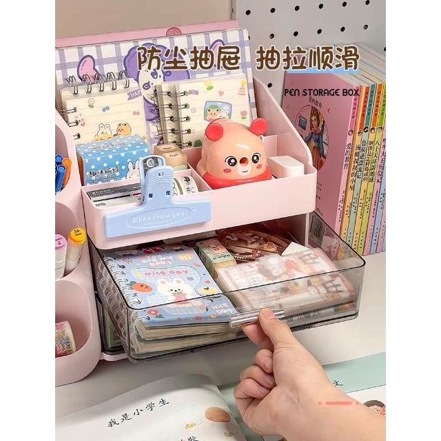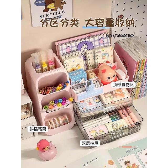 斜插式筆筒書桌收納盒學生兒童女孩文具整理置物架子辦公室帶抽屜