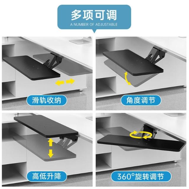 免打孔鍵盤架 鍵盤托架 桌下抽屜滑軌托架 鍵盤收納架 桌面夾鍵盤托 鼠標架 電腦桌鍵盤托架鼠標架托桌面支架辦公室靜音滑軌