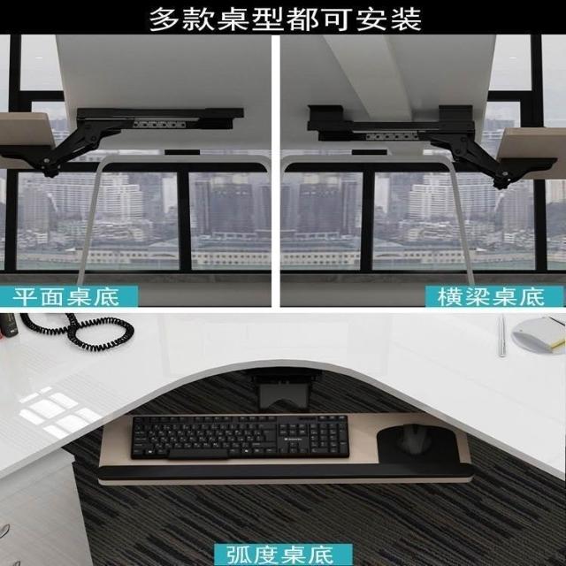 免打孔鍵盤架 鍵盤托架 桌下抽屜滑軌托架 鍵盤收納架 桌面夾鍵盤托 鼠標架 鍵盤托架免打孔滑軌鍵盤架免安裝桌面夾桌鍵盤抽
