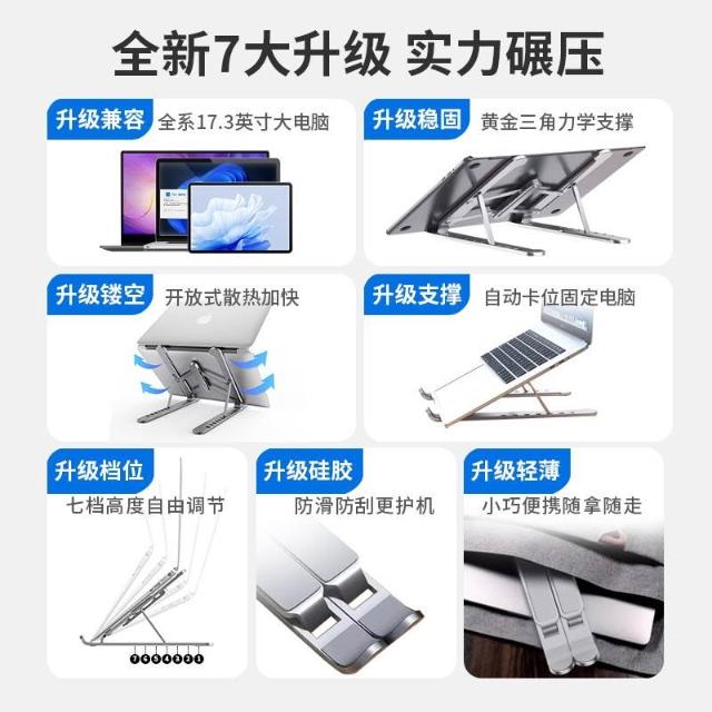 筆記本電腦支架托架散熱器便攜桌面增高可升降調節手提折疊鋁合金懸空立式架子適用於遊戲本平板辦公支撐底座