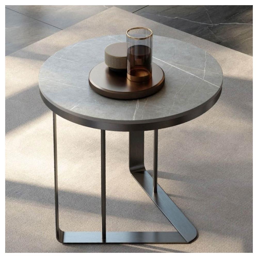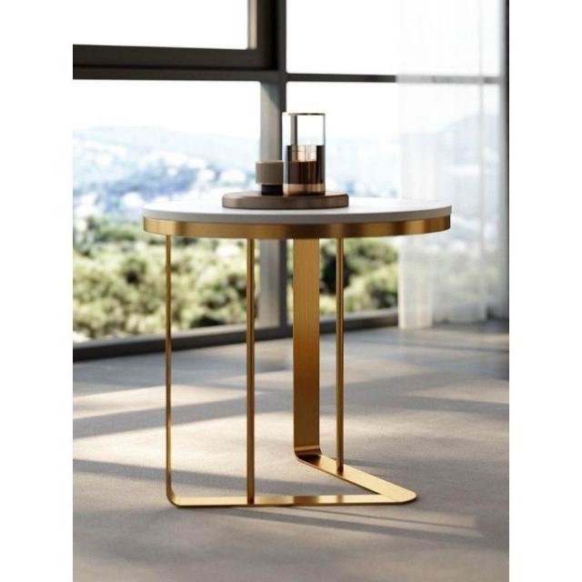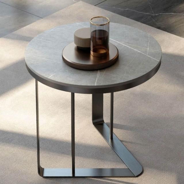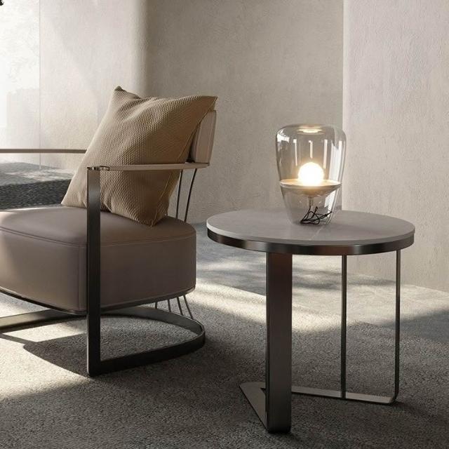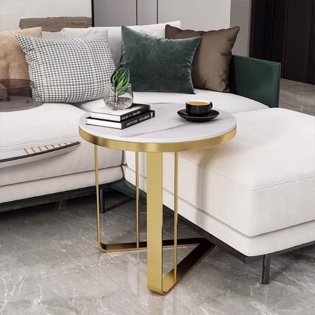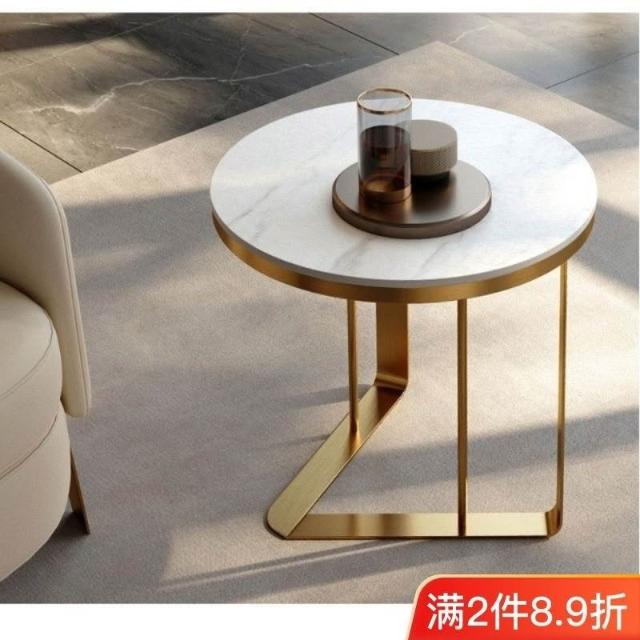 北歐輕奢巖闆圓型小茶幾客廳極簡沙髮邊幾陽臺創意網紅小茶桌ins