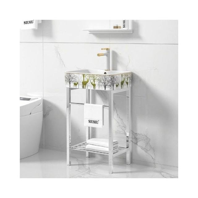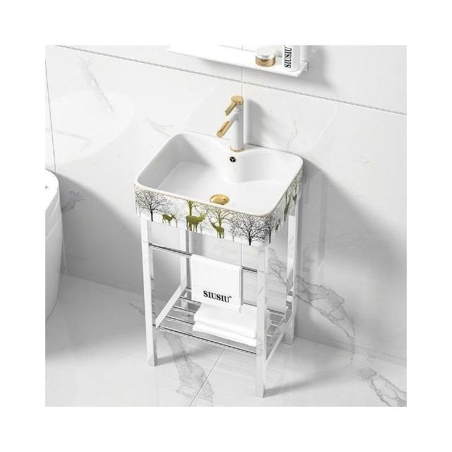 金鹿陶瓷洗手盆落地式洗漱面盆不銹鋼支架立式洗臉盆洗手池水池盆