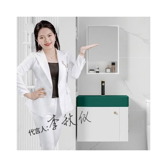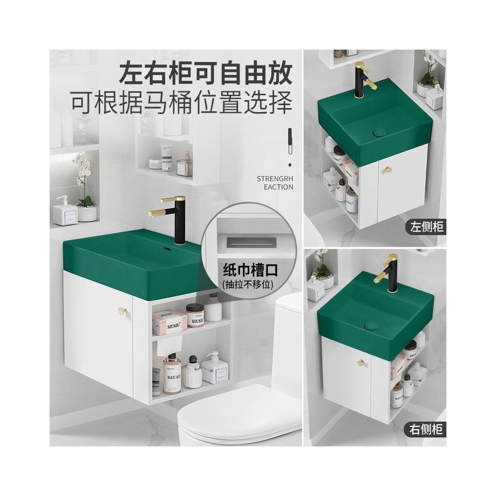 側開放格儲物櫃小戶型掛墻式實木浴室櫃墨綠色陶瓷洗手盆洗漱盆