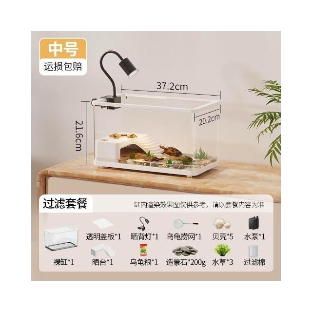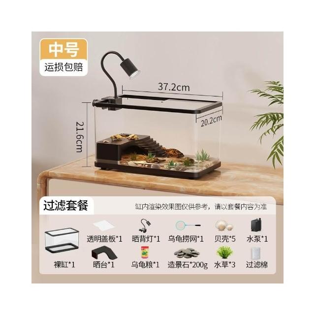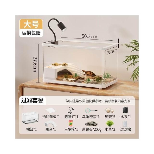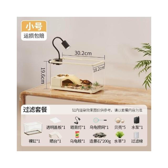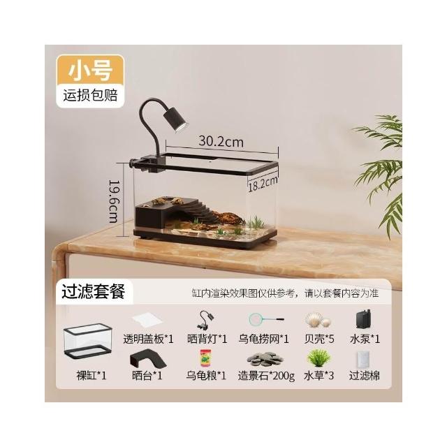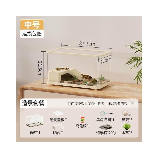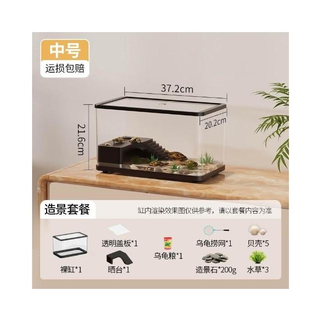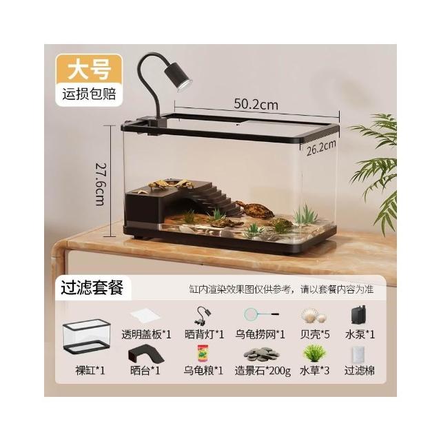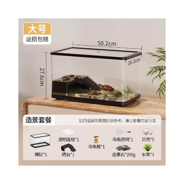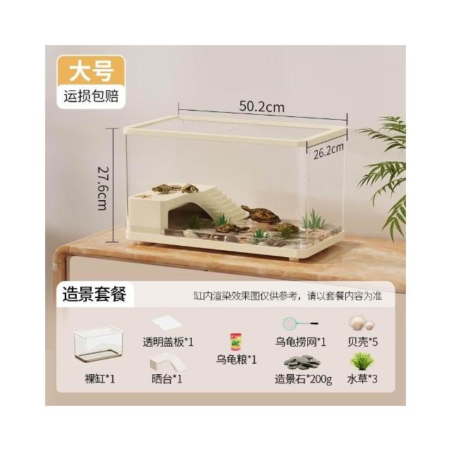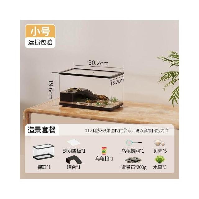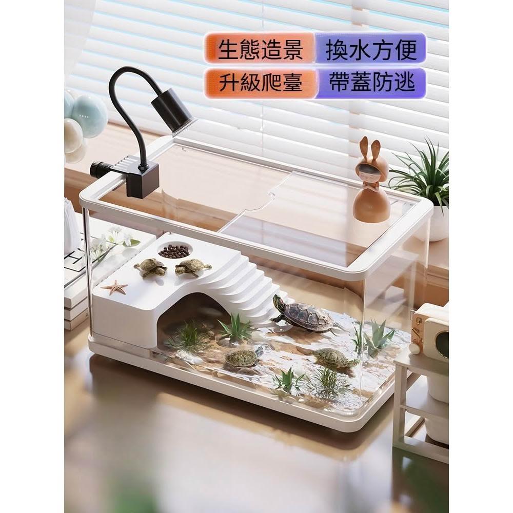 烏龜飼養缸生態造景家用帶蓋小型別墅爬臺底部排水專用箱巴西龜缸