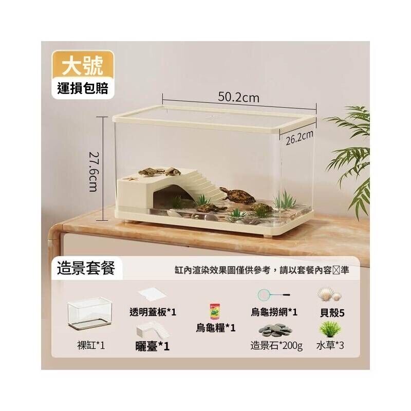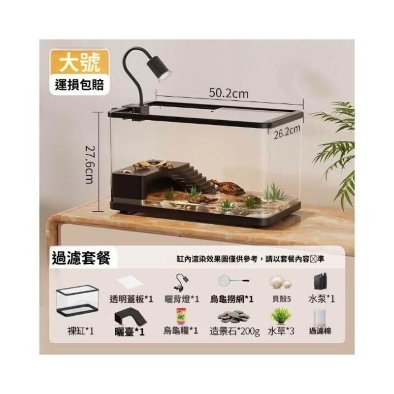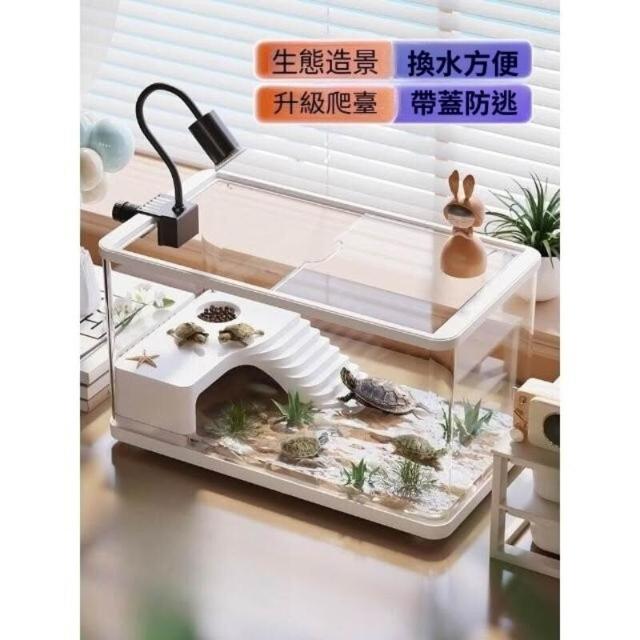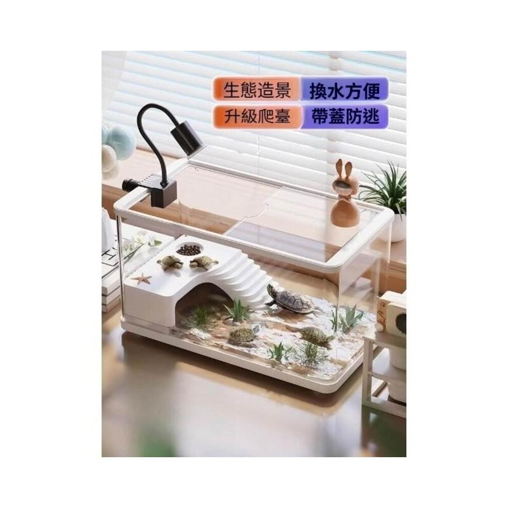 烏龜飼養缸生態造景家用帶蓋小型別墅爬臺底部排水專用箱巴西龜缸