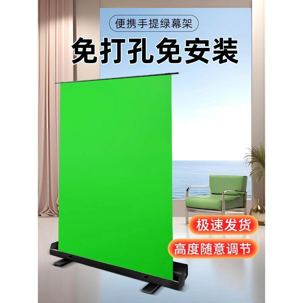 可升降地拉綠幕可攜式綠布背景布加厚不透光綠幕摳像直播間綠色背景牆摳圖架專業人像拍照3D立體網紅背景牆