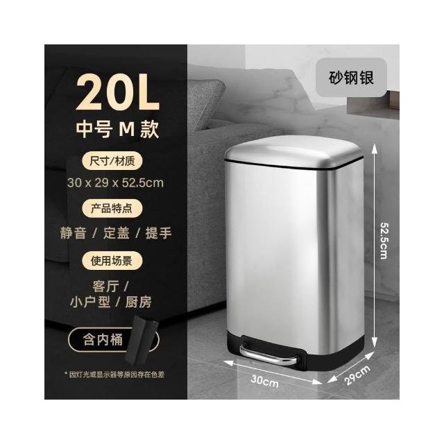 不銹鋼垃圾桶 廚房家用大號垃圾桶 腳踏式帶蓋大容量垃圾桶 酒店商用辦公室50L垃圾桶