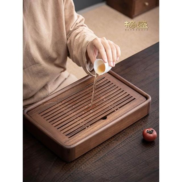 榜盛胡桃木茶盤小型家用茶臺一人儲水排水茶海茶具託盤實木幹泡盤
