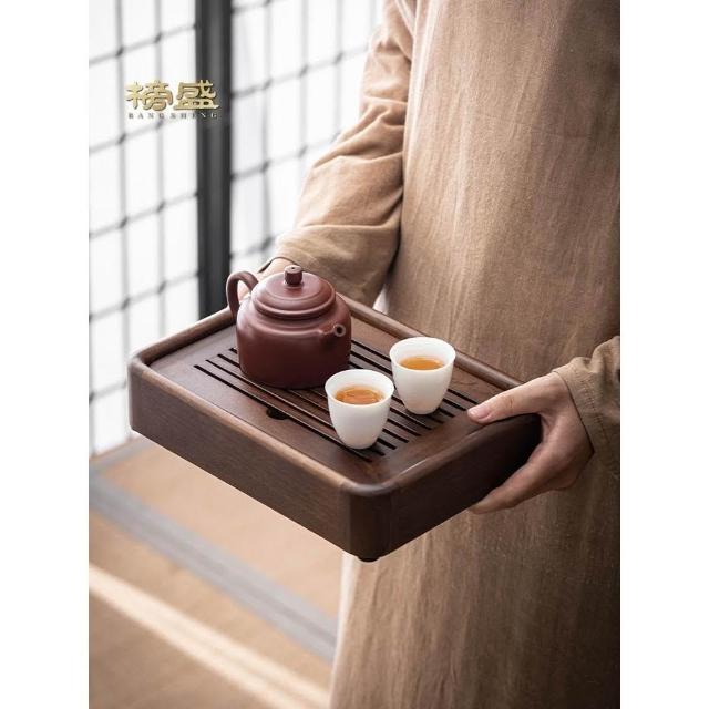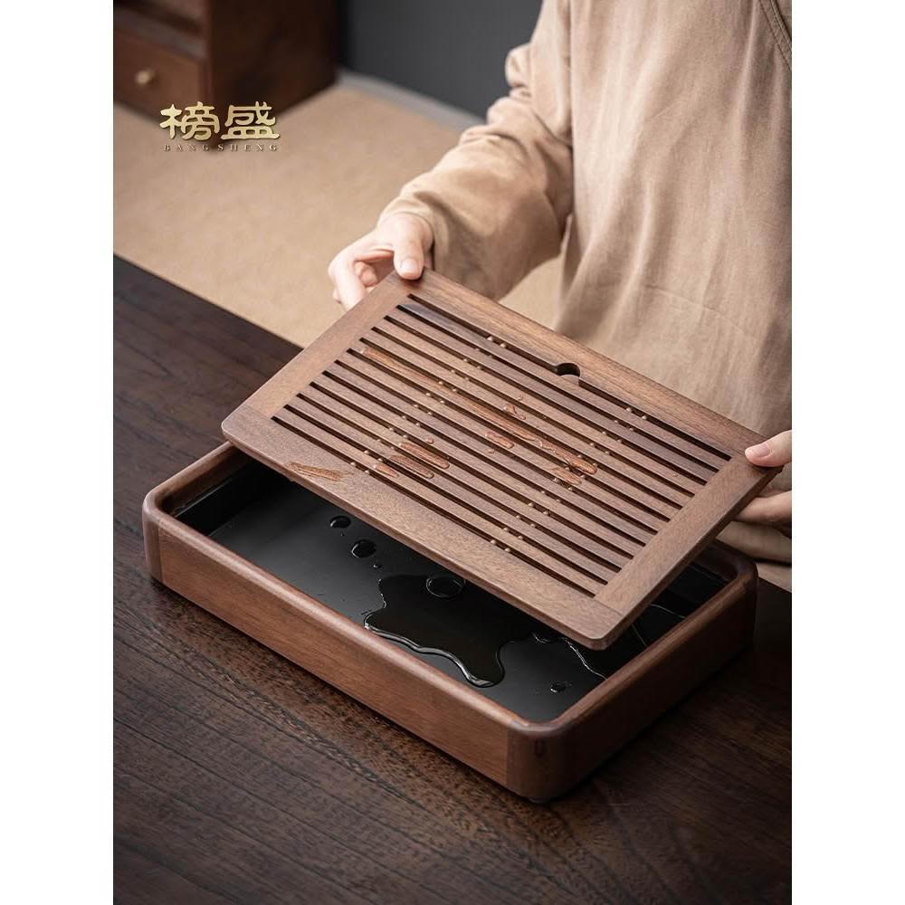 榜盛胡桃木茶盤小型家用茶臺一人儲水排水茶海茶具託盤實木幹泡盤