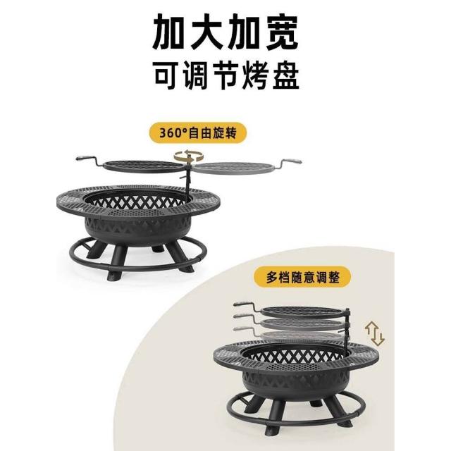 戶外工匠燒烤爐庭院多功能圍爐煮茶桌燒烤架柴火竈烤火爐家用取暖